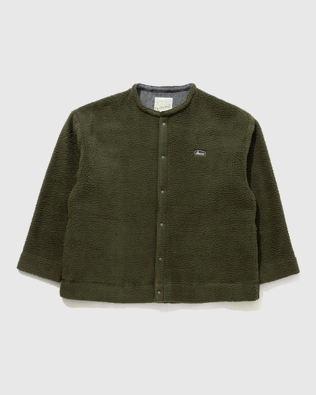 秋冬定番のボアシリーズ。ボアフリースはペットボトルリサイクル素材、裏地にはオリジナルのヘンプコットン生地を使用する等、現在に至るまで少しずつアップデートを重ね、拘り抜かれた逸品に仕上がっています。廃棄ペットボトルの再利用繊維を使用することで環境負担の低減と、多くの人が環境問題へ関心を持ち行動してもらいたいというコンセプトです。 着回しの効くシンプルなノーカラーシャツジャケット。全体的にゆとりのあるシルエットなので、インナーにスウェットなどの厚手物をレイヤードすることも可能です。 material : POLYESTER 100% 別布 - COTTON 90% HEMP 10% size : XS,M,L モデル 身長175cm Mサイズ着用