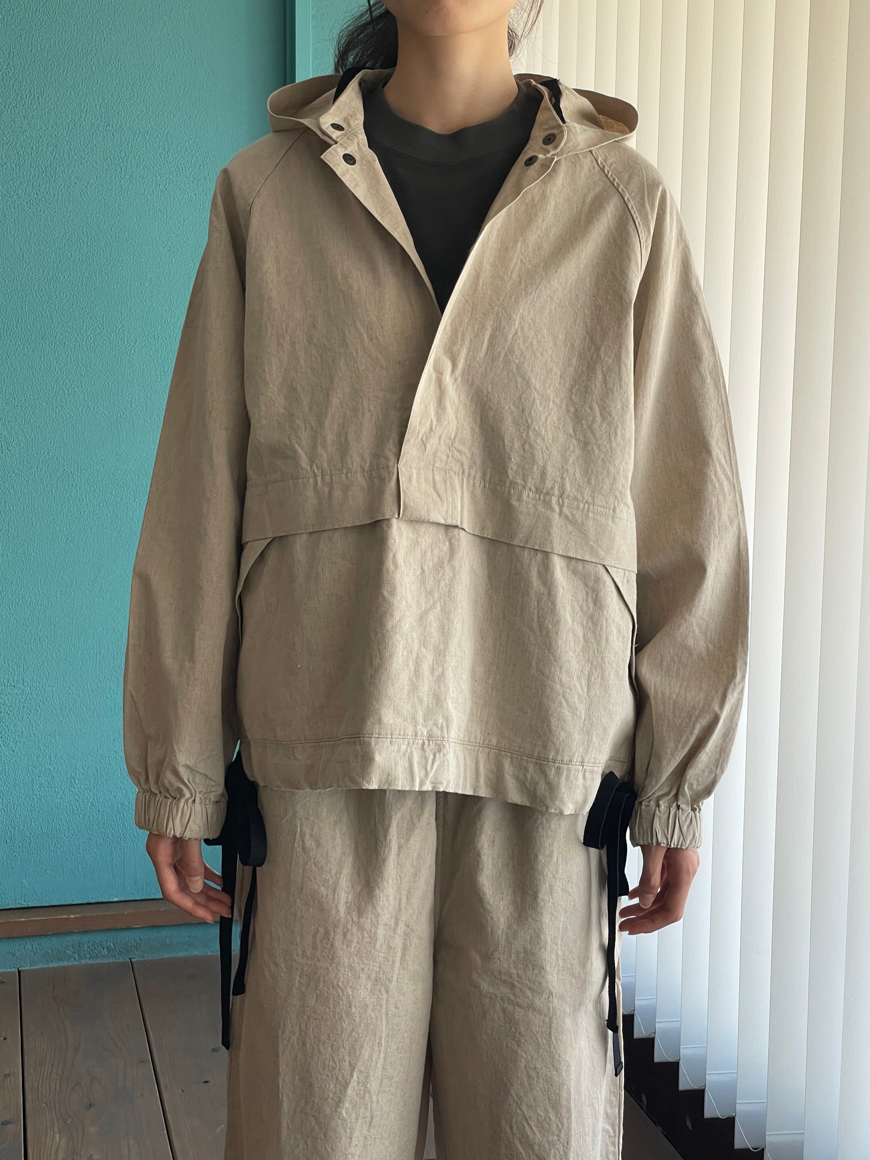 ヘンプ55% コットン45% ウェザー素材を使用。同素材のボンタンとセットアップになります。日常着からお出かけ着にあると重宝するセットアップです!