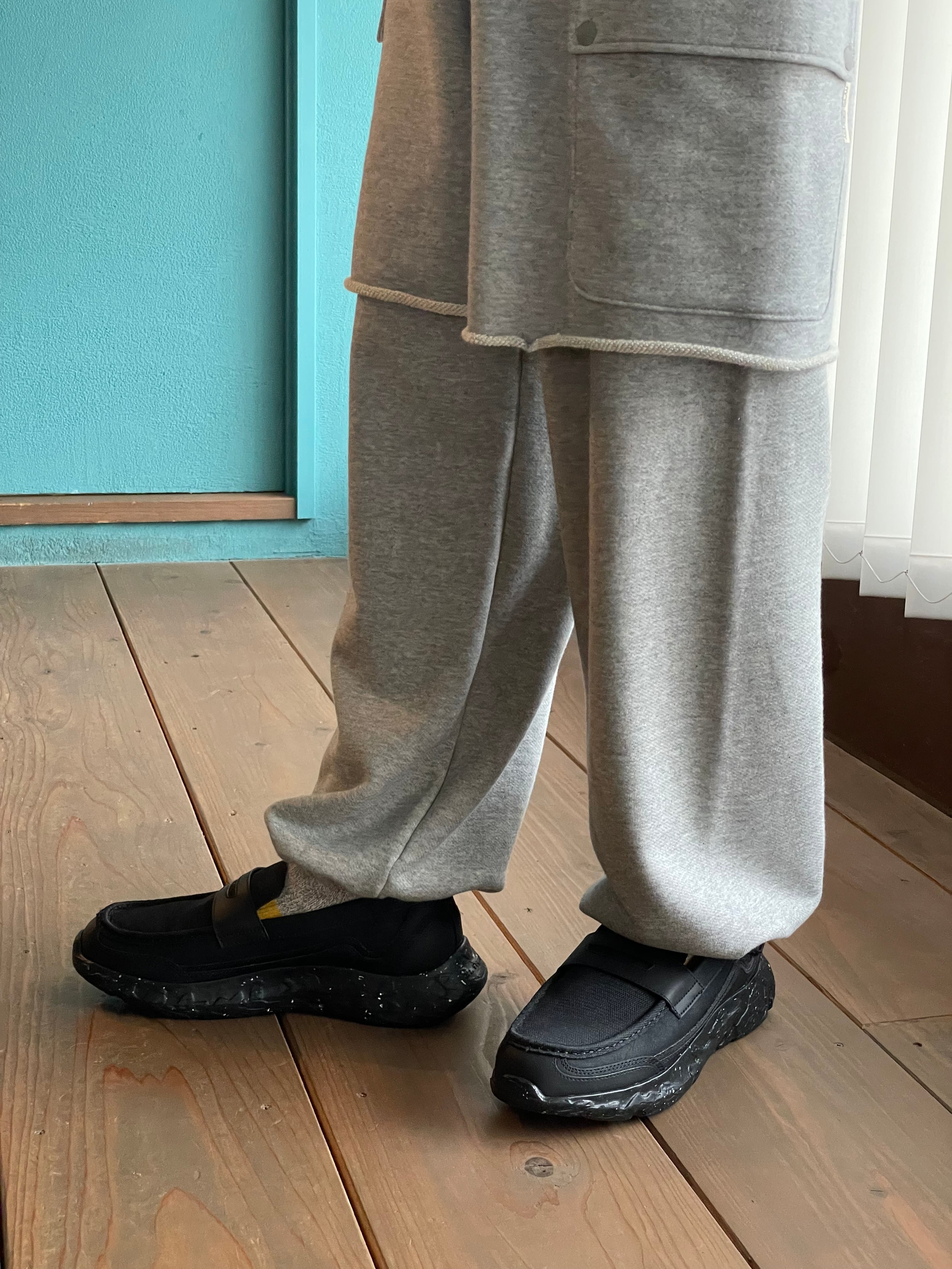 ナイロンアッパーにPUサドル、TPUマッドガードと異素材をMIXしてテック感を演出した「トリプルブラック」シリーズのローファー。チップが混ざった凹凸感あるEXTRALIGHTのサステナブルソールが、クラシックなローファーをモダンき魅せます。ナイロンアッパーの裏面に防水フィルムを貼っているので、水にも強い点も特筆。カジュアルローファーがブレイクしている今季のマストハブアイテム。