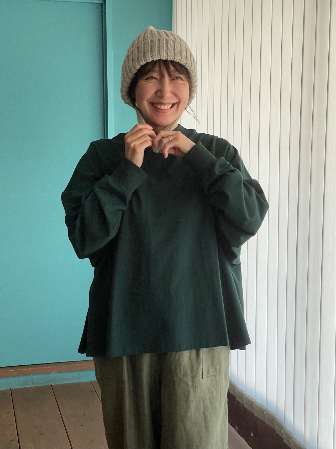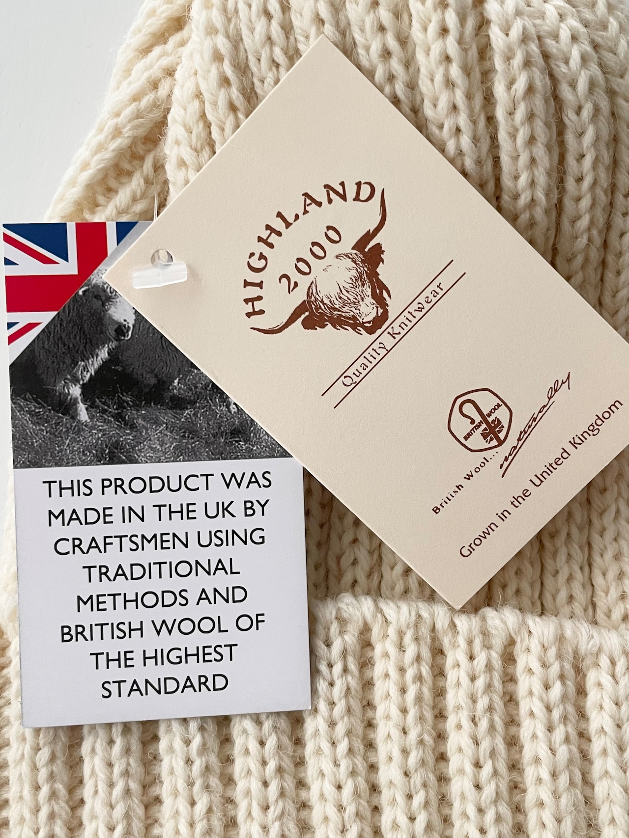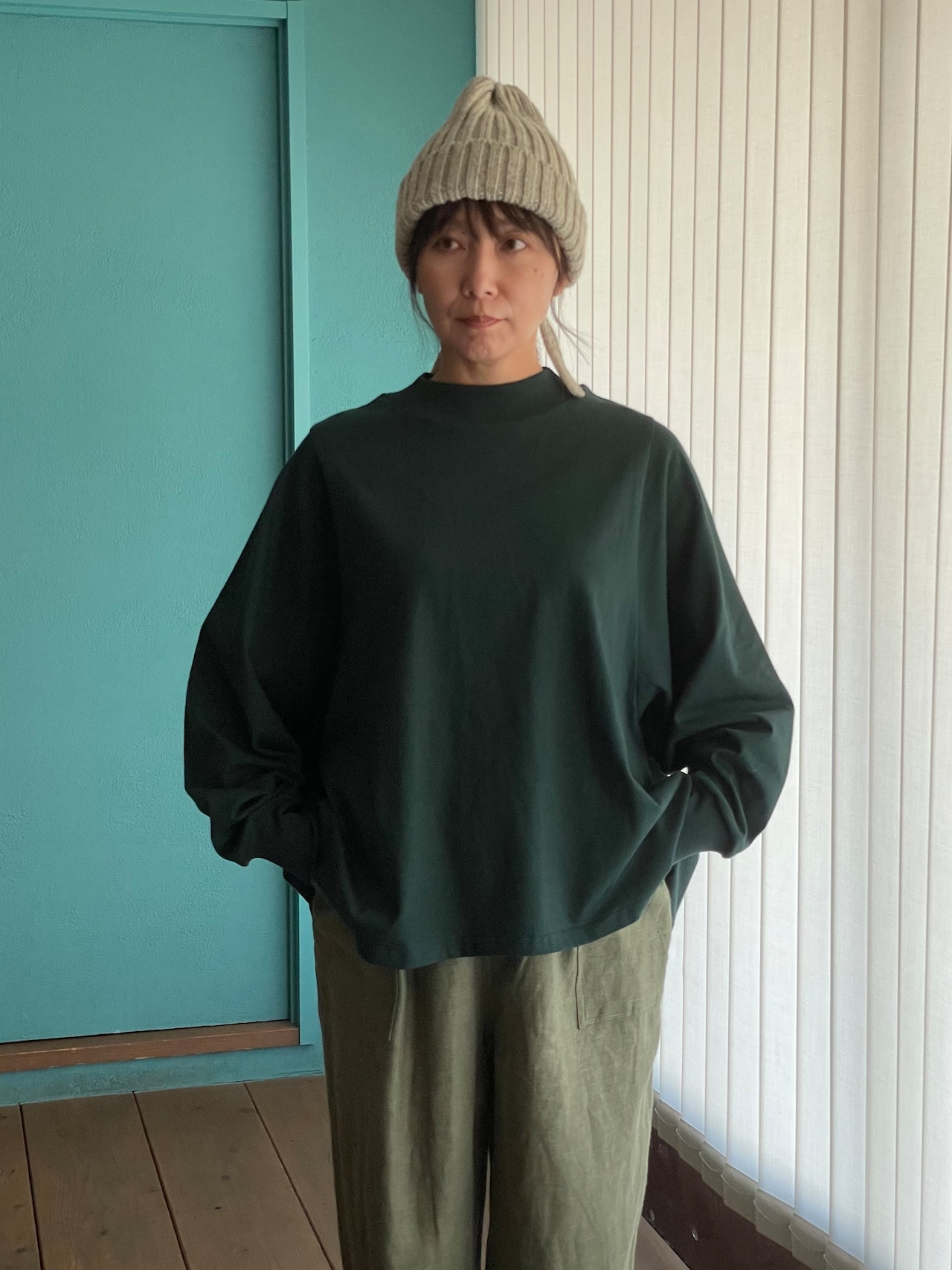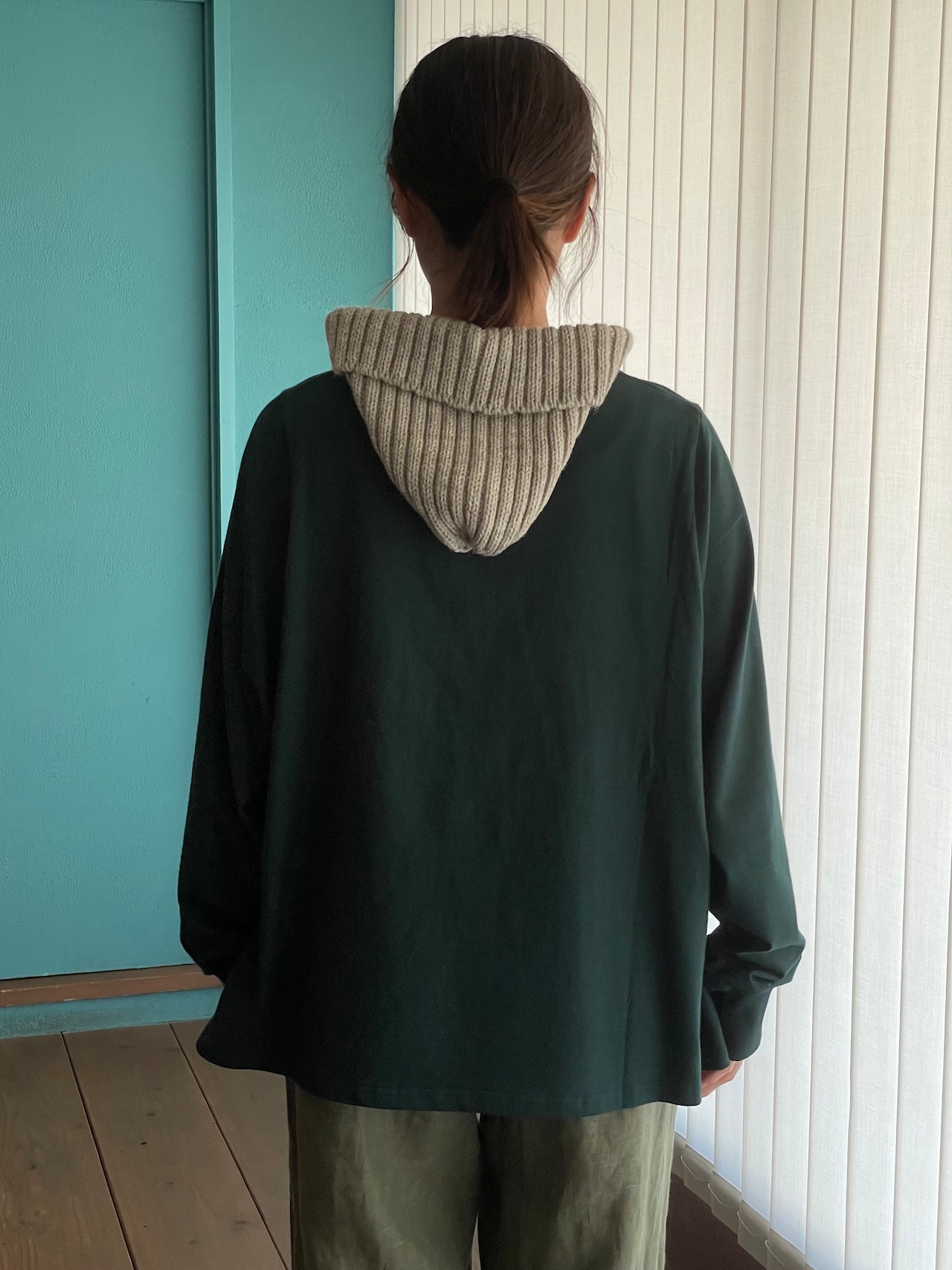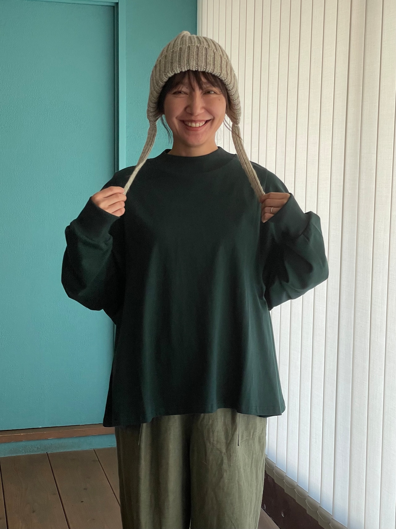 ハイランド定番のニット帽をアレンジ。後頭部に絞れるコードを配し、様々な被り方を提案。
