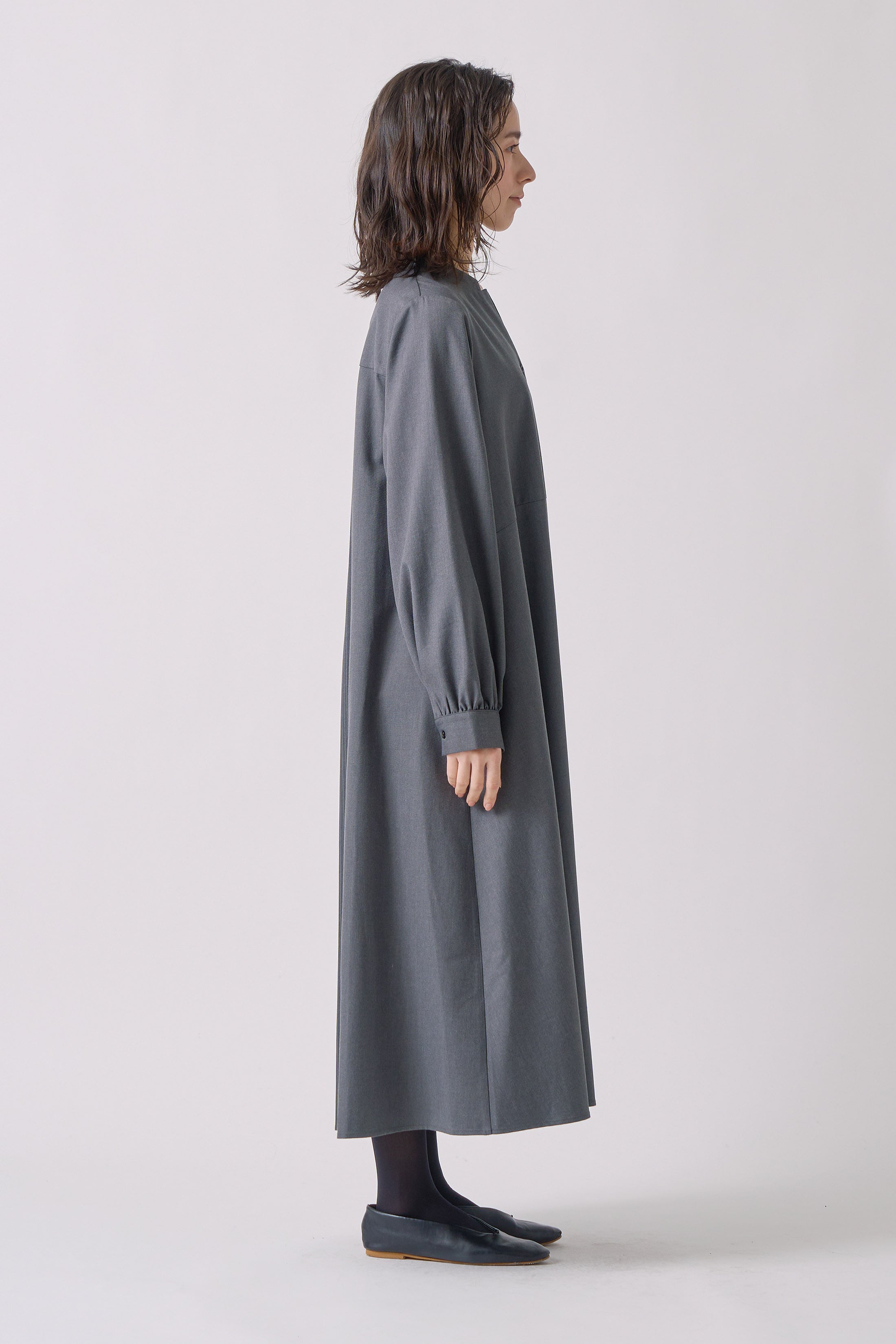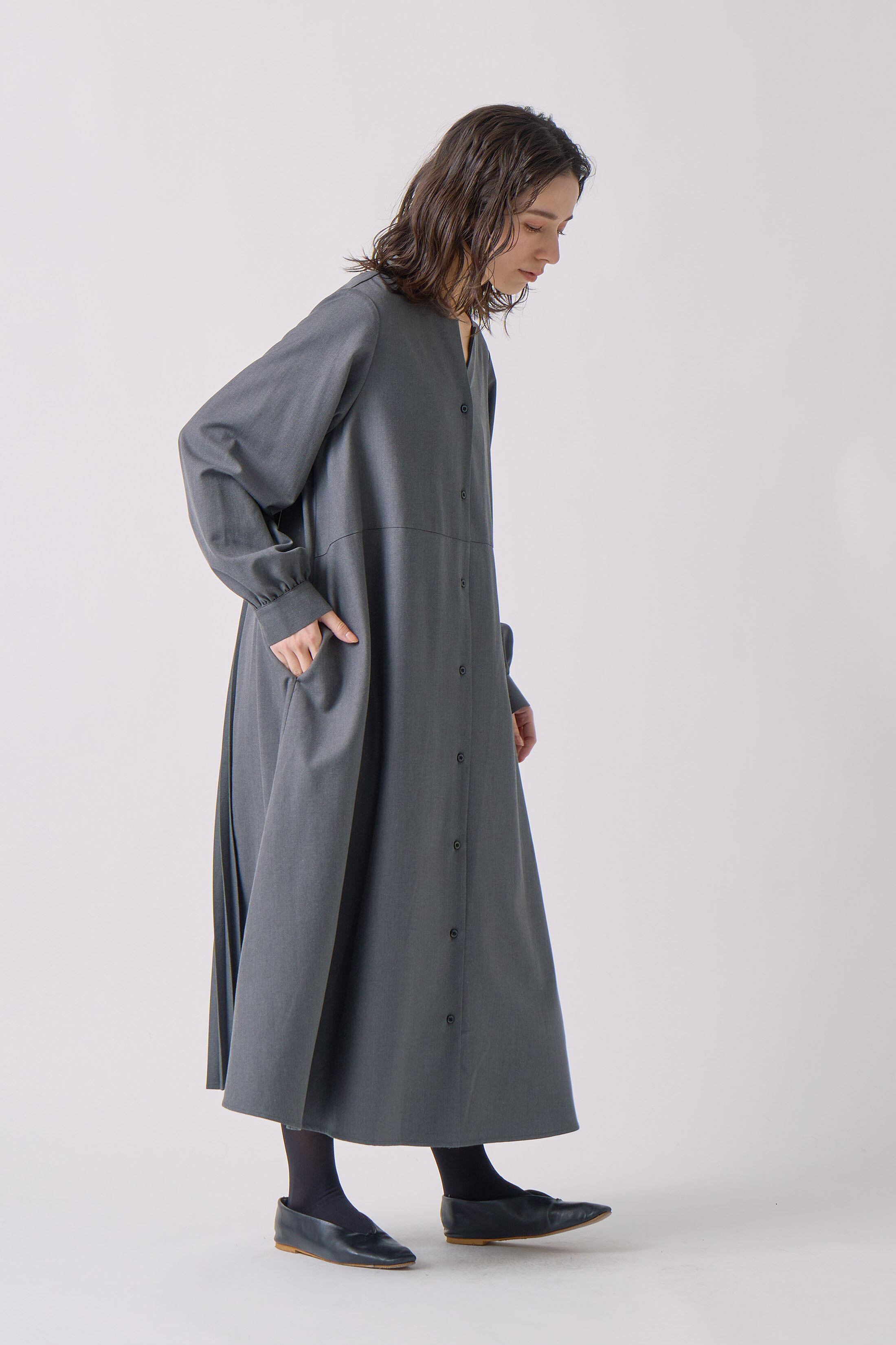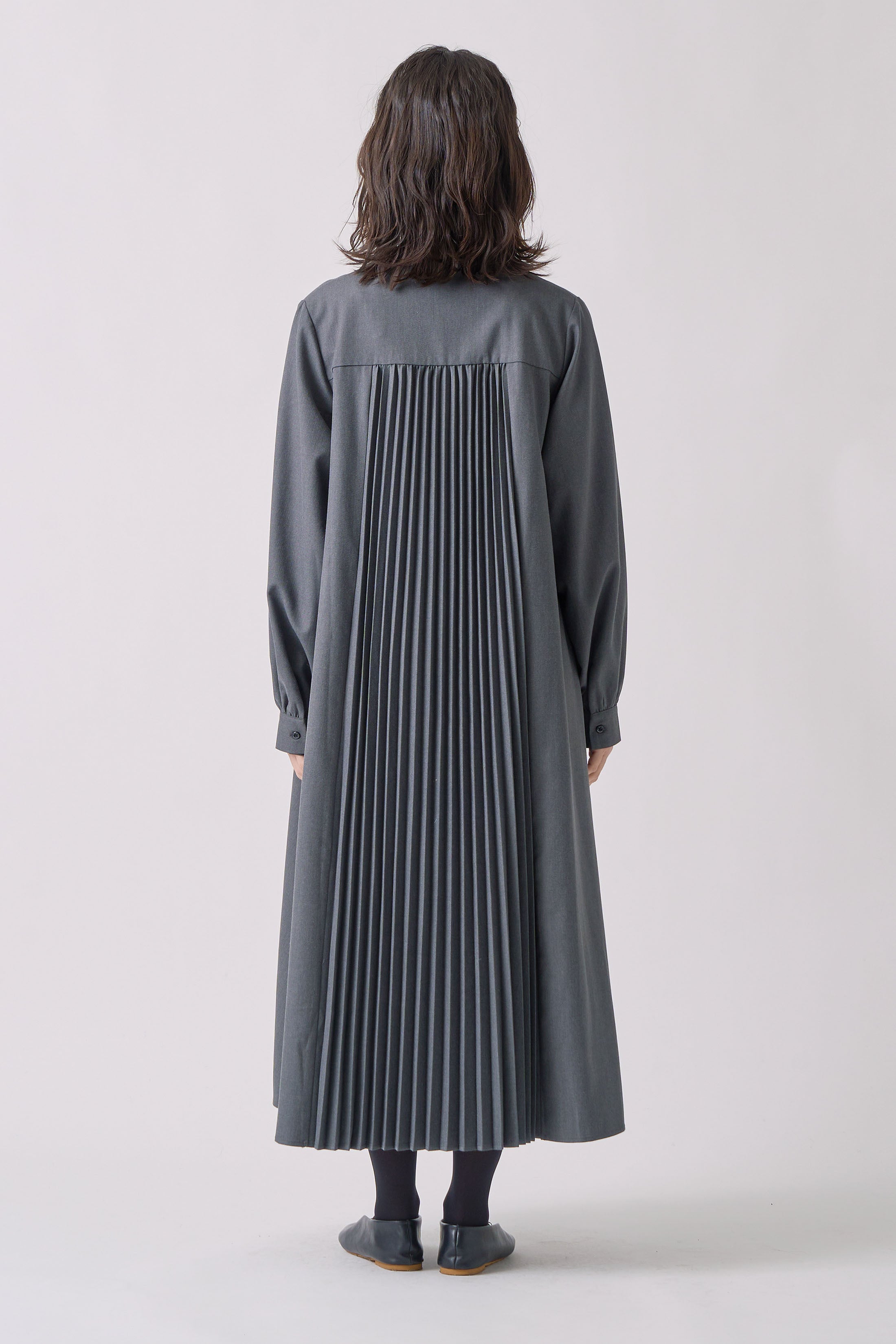 Kelen - DESIGN COLLAR BACK PLEATS DRESS "LAETY" / CHARCOAL