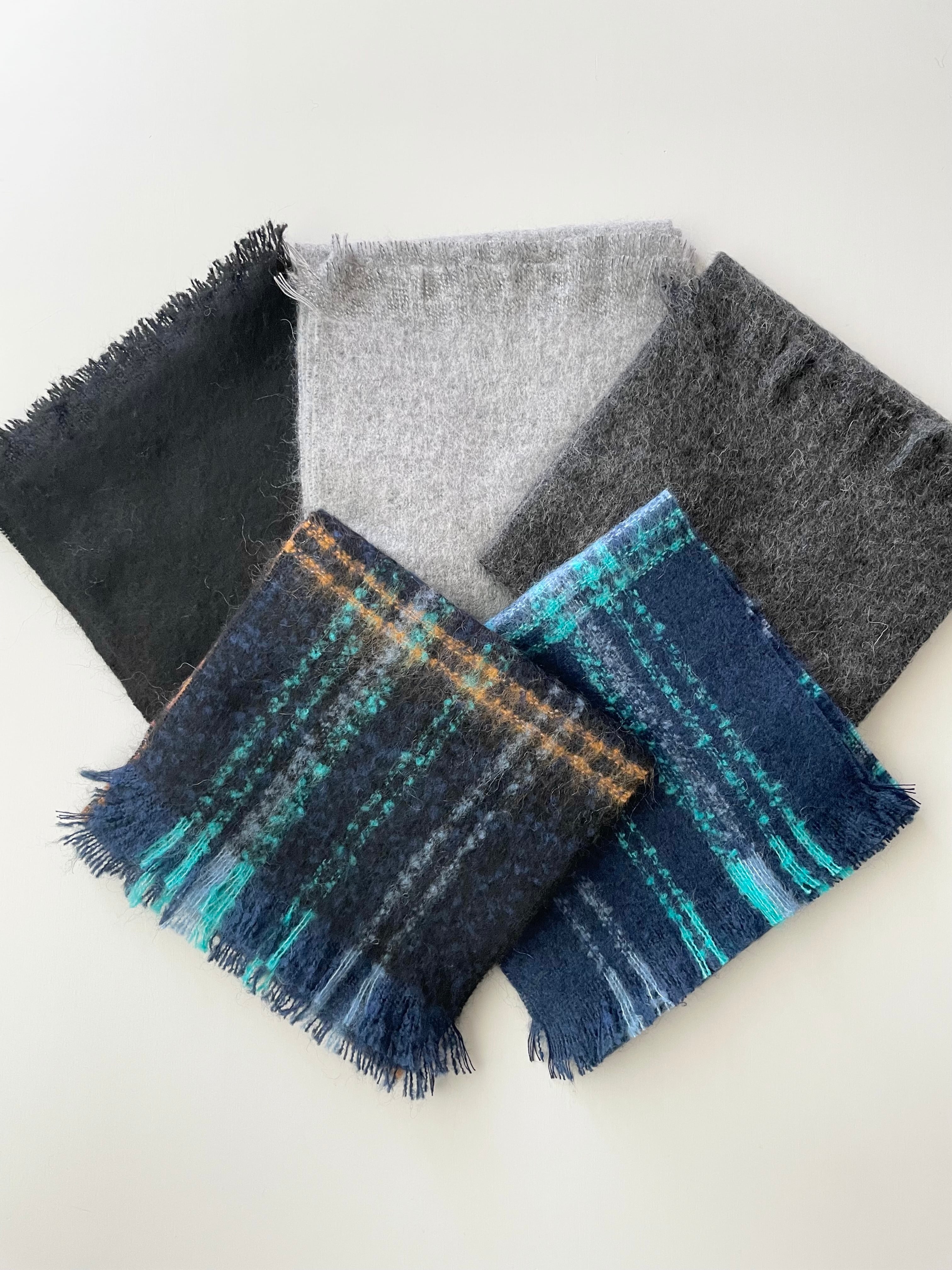 モヘアブレンドのマフラー。巻きやすいサイズとボリューム感で、男女問わずおすすめです。フランス製ながらコストパフォーマンスも抜群です。