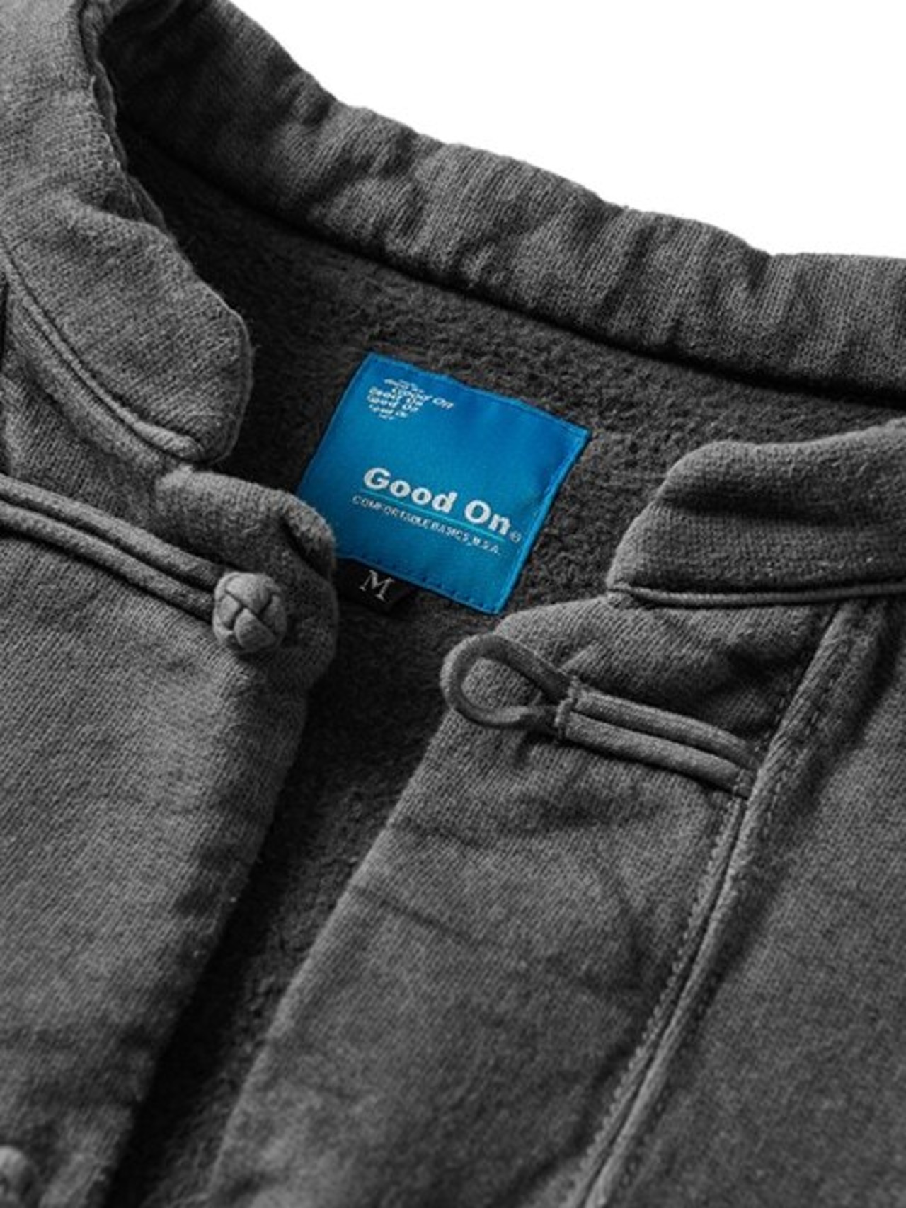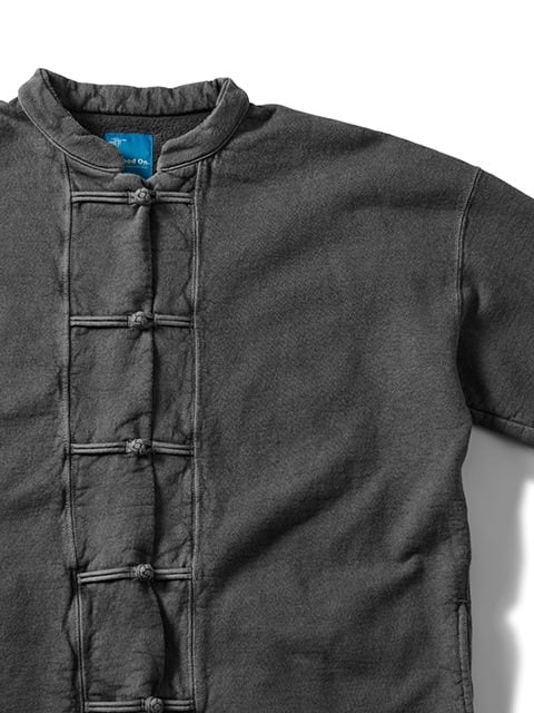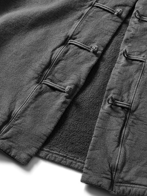 軽量ながらしっかり目の詰まった裏起毛スウェット生地 (9オンスナップフリース) を使用して製作したカンフージャケット。商品名は俳優・格闘家のブルース・リー氏の哲学であるJeet Kune Do (ジークンドー) に由来しています。人間としての生き方を表すその哲学は、混沌とした今の時代を生きるための道標となると共に、 普遍的側面と共に独自の個性を積み重ねてきたGood Onのモノづくりへの理念にも通じています。