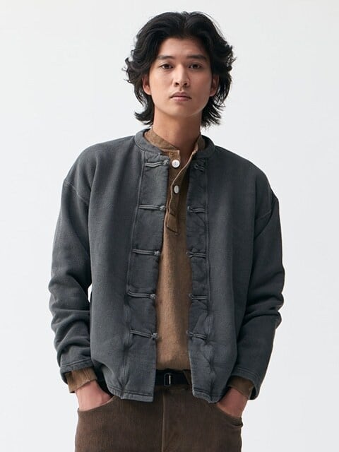近年のトレンドとなっているカンフージャケット・チャイナジャケットをGood Onらしいアプローチでスウェットに落とし込んでおり、適度な厚みで軽量かつ温かい生地なのでインナー/アウター兼用でデイリーに着回しやすいうえ、気軽なメンテナンスで長く愛用することができます。