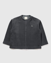 着回しの効くシンプルなノーカラーシャツジャケット。全体的にゆとりのあるシルエットなので、インナーにスウェットなどの厚手物をレイヤードすることも可能です。