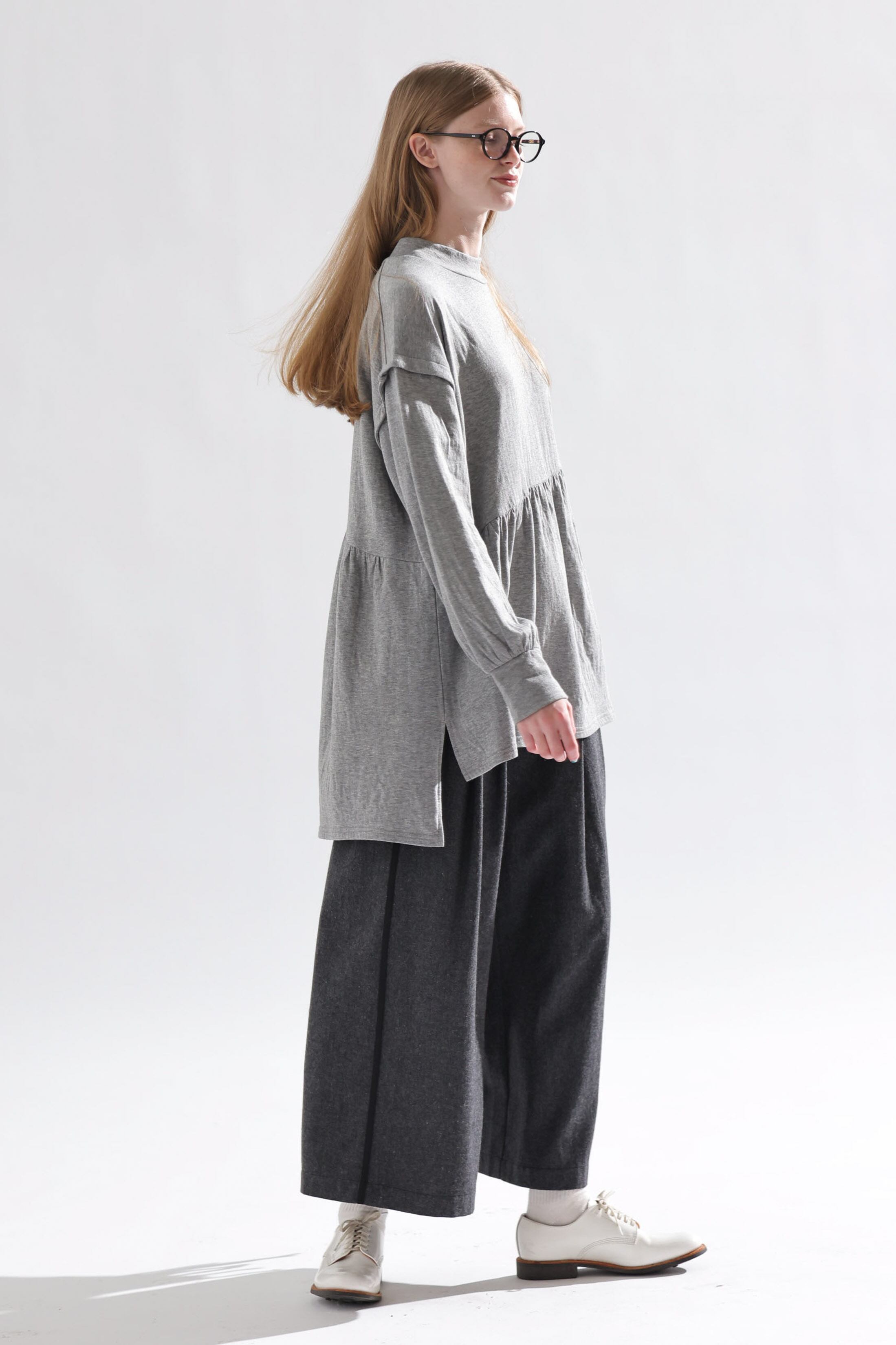 Kelen - ASYMMETRY GATHER TOPS "ARUMA" / LT.GRAY