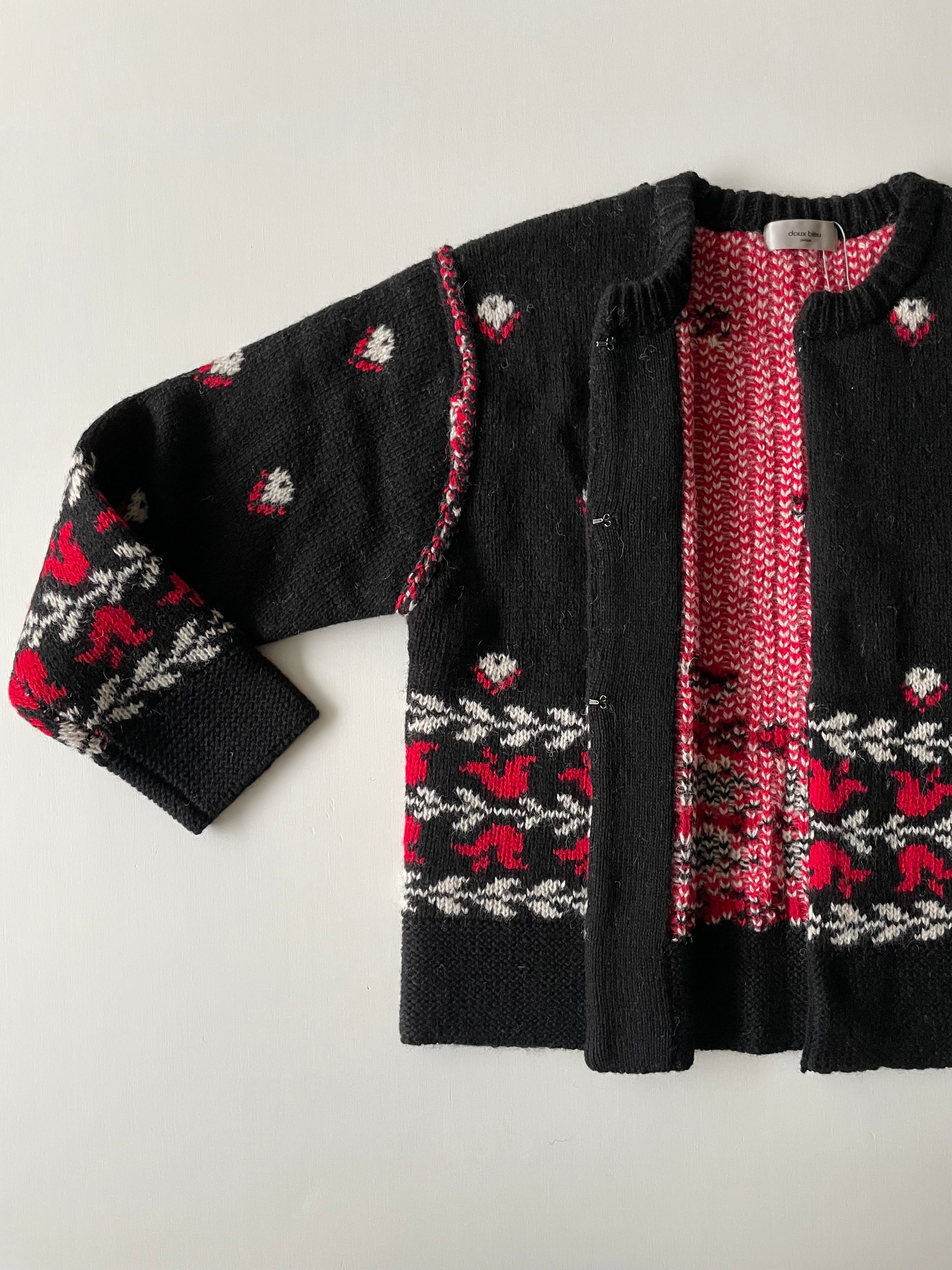 ノスタルジックな雰囲気の柄ジャガードニットアウター。ジャガード編みの温かさとウール素材の軽さが魅力。前開きはホック仕様でジャケットのように着用いただけます。柄にインパクトがあり存在感を放つ一着。きれいめなパンツなどボトムはシックな雰囲気にまとめるのがおすすめです。