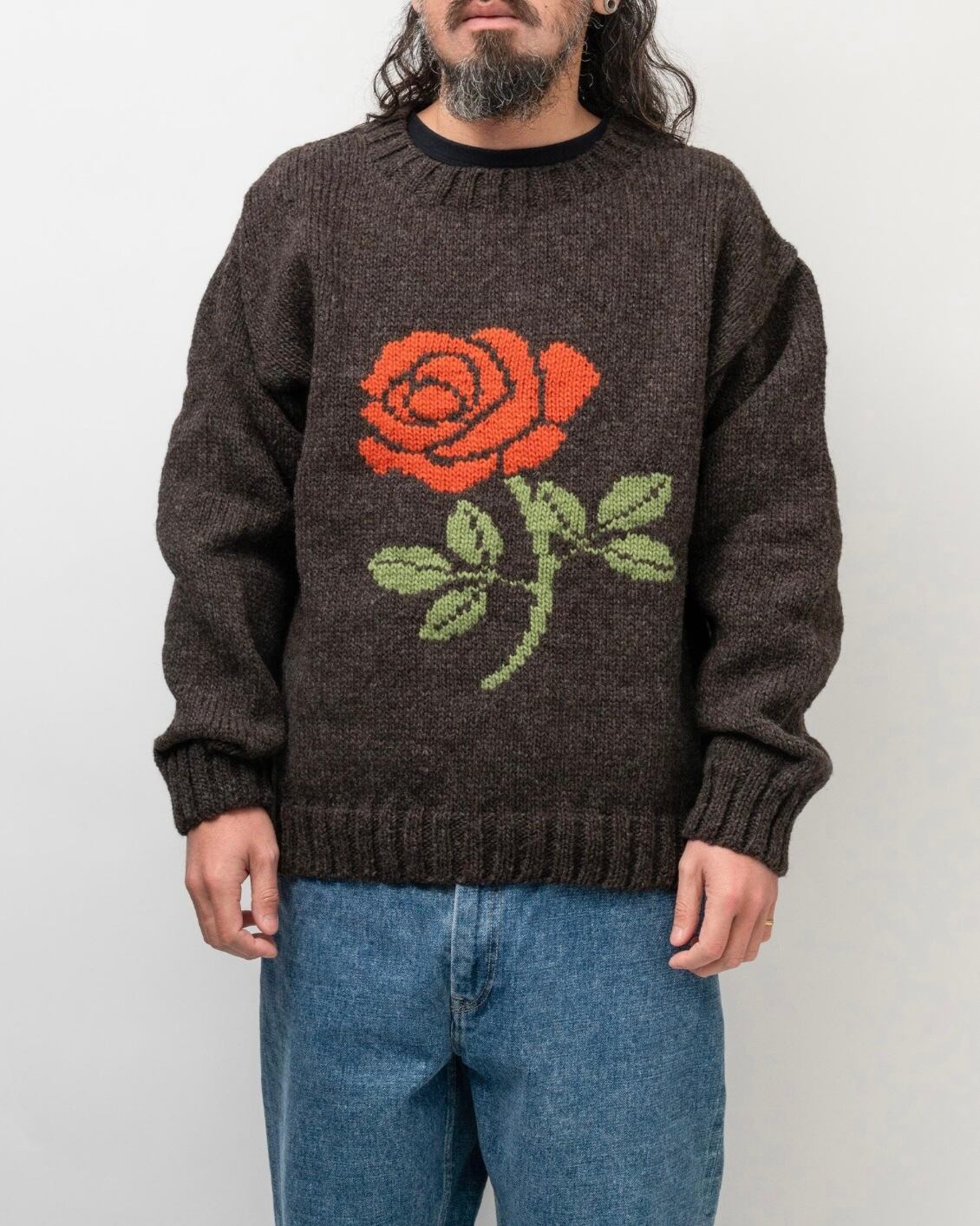 冬の人気定番のひとつ、南米ペルー製のウールニットセーターです。先住民インディオの伝統素材と技を使い、色、柄、シルエット全てを別注で仕上げています。ペルーウール100%の優しい温かさや素朴な表情は本物でしか味わえない魅力があります。ドロップショルダーと広くとった身幅とアームホールにより、トレンド感のある丸みを帯びたワイドシルエットになります。適正サイズで着用しても大きめのサイズ感になります。