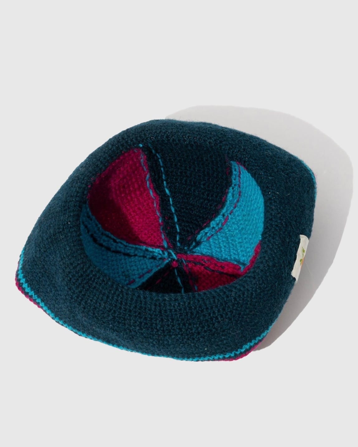 ハンドメイドで編み上げたクロシェハット。ややツバ広に設定することで、フロントのツバを上げても下ろしたままでもバランス良くかぶることができます。男女共に被りやすいアイテムです。大量生産ではなく職人さんがひとつひとつ多くの時間と手間をかけて作っています。仕上がり具合に多少の個体差が生じる場合がありますが、手作りならではの個性としてお楽しみください。