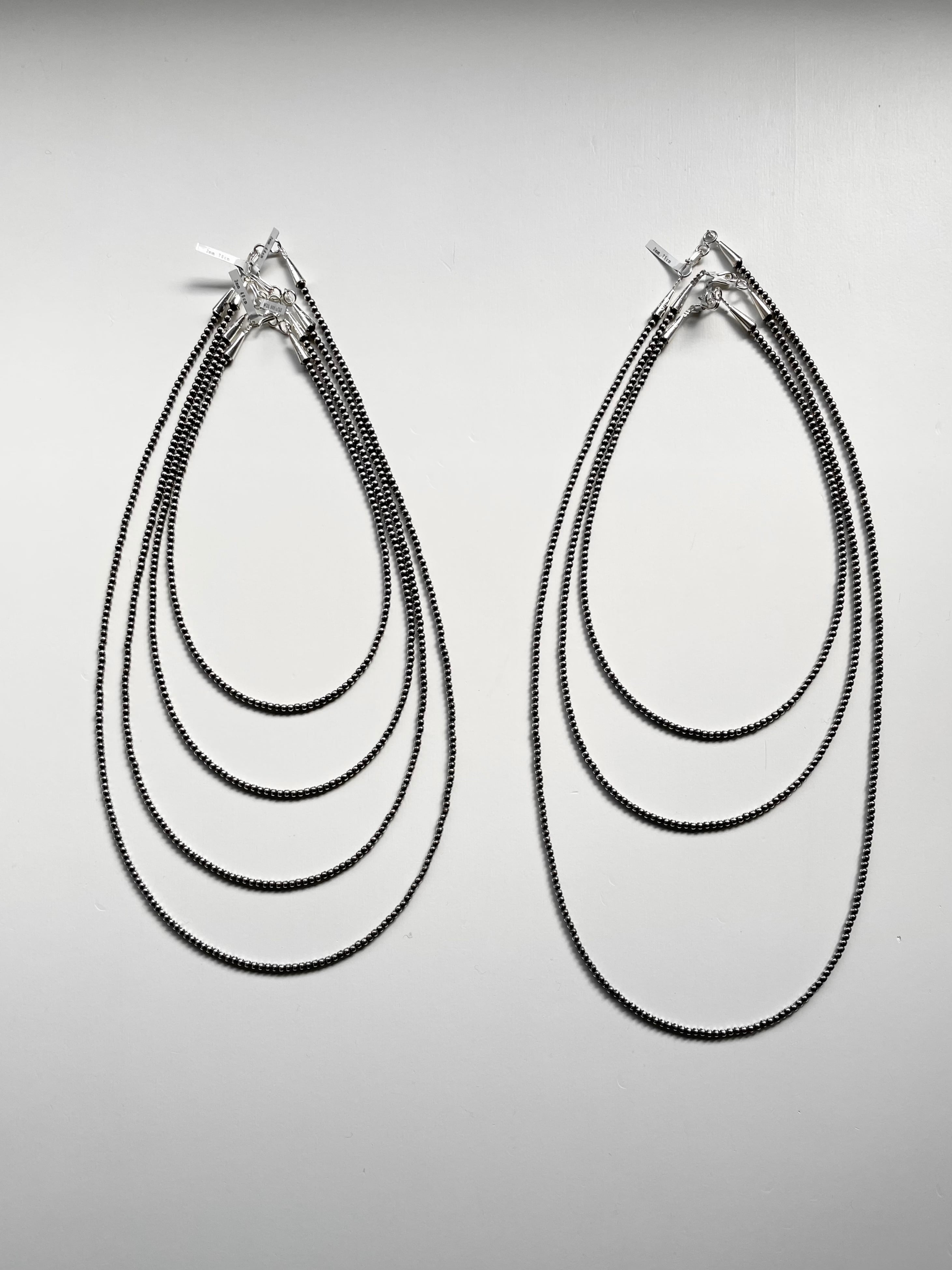 半球状のシルバー2つを繋げて1つのビーズとなるナバホパールは1つのネックレスやブレスレットを作るだけでも大変な労力と時間がかかるため現代ではそのほとんどが機械で作られたビーズになってしまいました。そんな現代において、ネイティブアメリカン本来の考え方や歴史、伝統を大切にしているEricka Nicolas Begayは、ビーズはもちろん、フックやコーンなどのパーツもシルバーを溶かすところから全て手作業のインゴットシルバーに拘りナバホパールを製作しています。温かみのある深い色合いや柔らかな付け心地は手作業ならでは。代々受け継がれてきた伝統に触れることができる唯一無二の作品です。