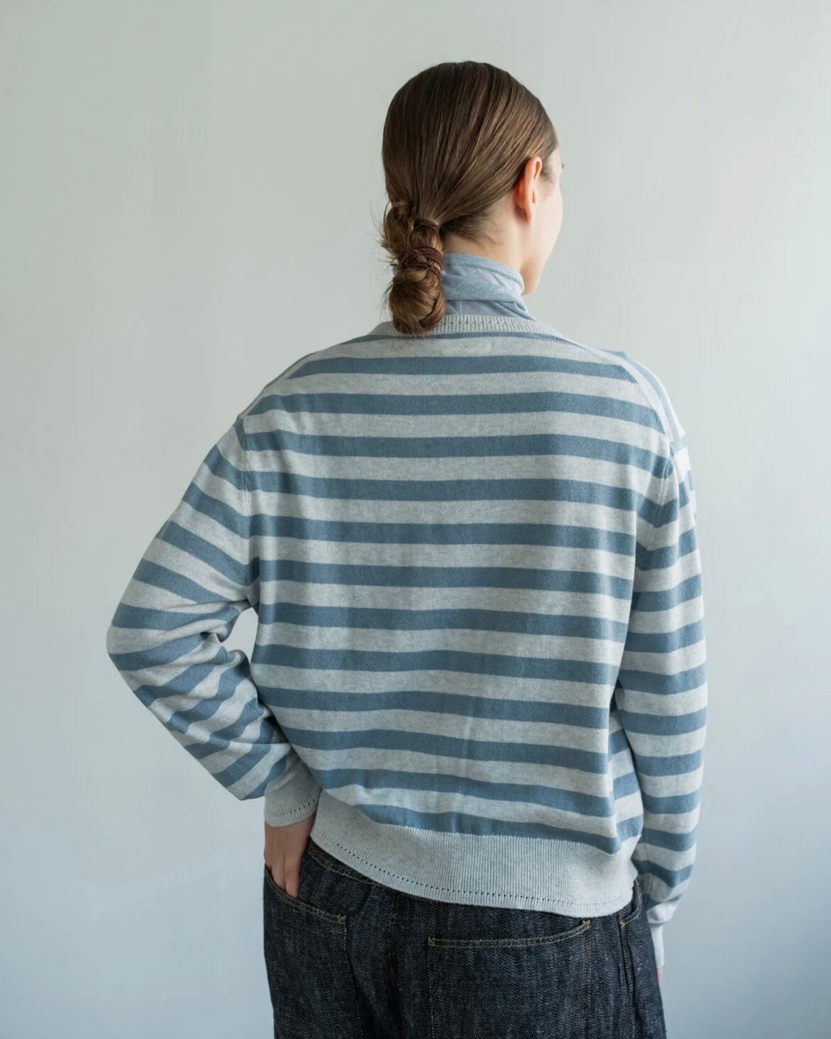 YARRA - コットンカシミヤクルーカーディガン / L.GRAY×BLUE