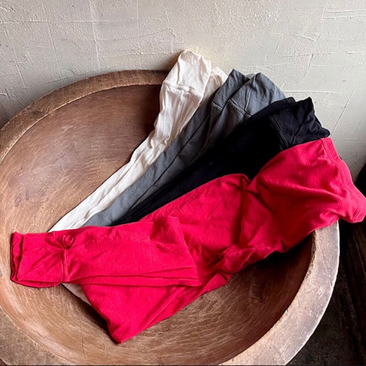 素材には世界中の綿の中でわずか5%しかない希少な「超長綿」、その中でもオーガニック栽培されたペルーピマを使用。日本国内で編み立て、縫製したあとは、植物・鉱物から抽出した色素に必要最小限の化学染料を加え、鮮やかで深みのある色を実現したボタニカルダイ製法で染色します。通常の天然染料に比べ色ムラや色落ちもしにくく、デイリー使いするインナーでも安心な、環境配慮型の染色です。