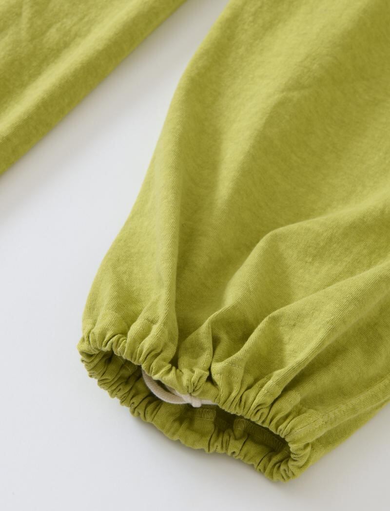 グッドオン定番のTシャツ生地を使用し、生地の持つカジュアル感と柔らかな雰囲気、製品染め特有の風合い感を生かしてシンプルに仕上げたワイドシルエットのリラックスパンツ。