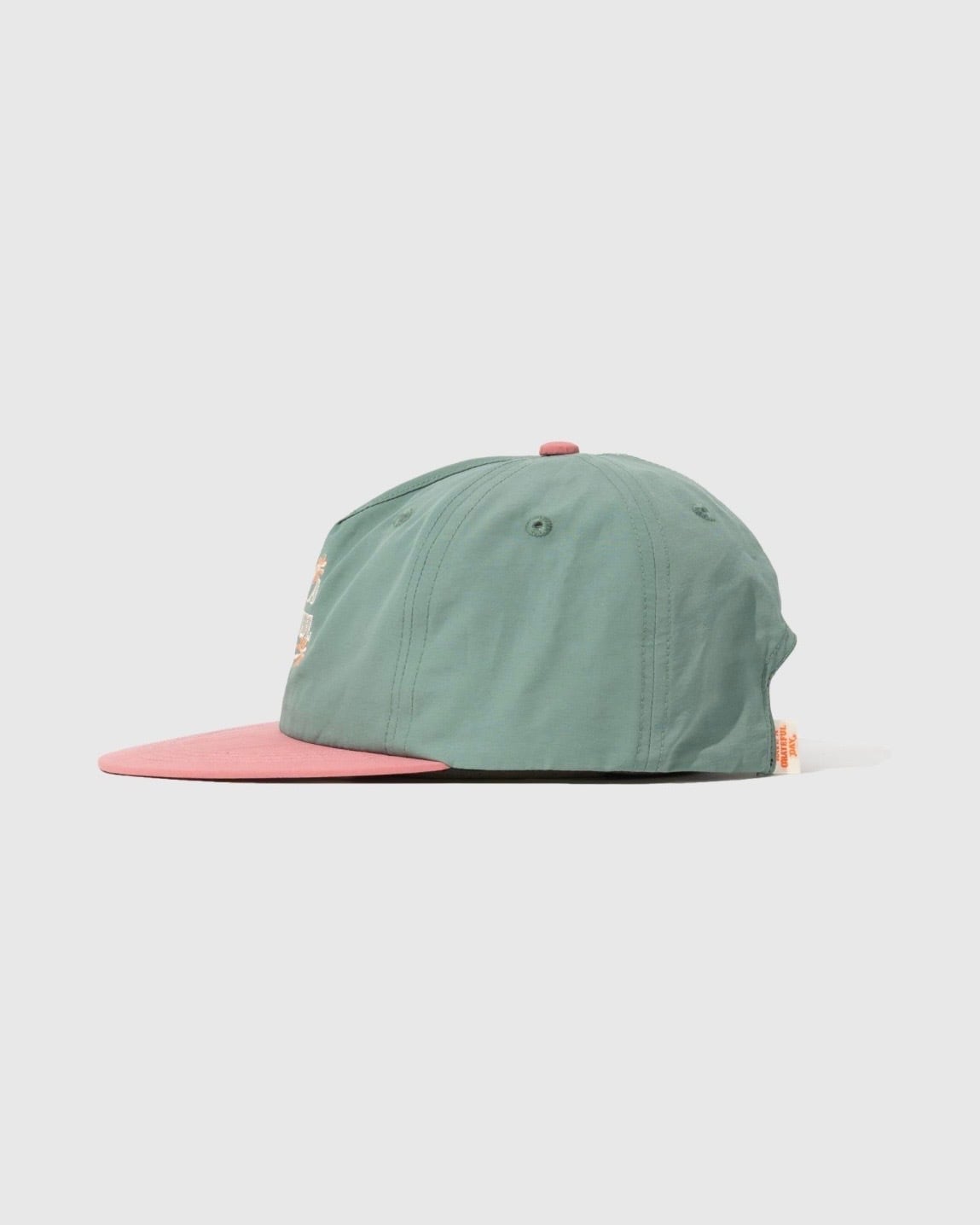 フラワーモチーフを絡めたブランドロゴがアクセントとなった5パネルキャップ。トラッカータイプのやや深めで安定感のある被り心地で、後ろにはサイズ調整可能なアジャスター付きなので性別問わず着用可能です。オールシーズ着用可能なコットンナイロン生地を使用しています。