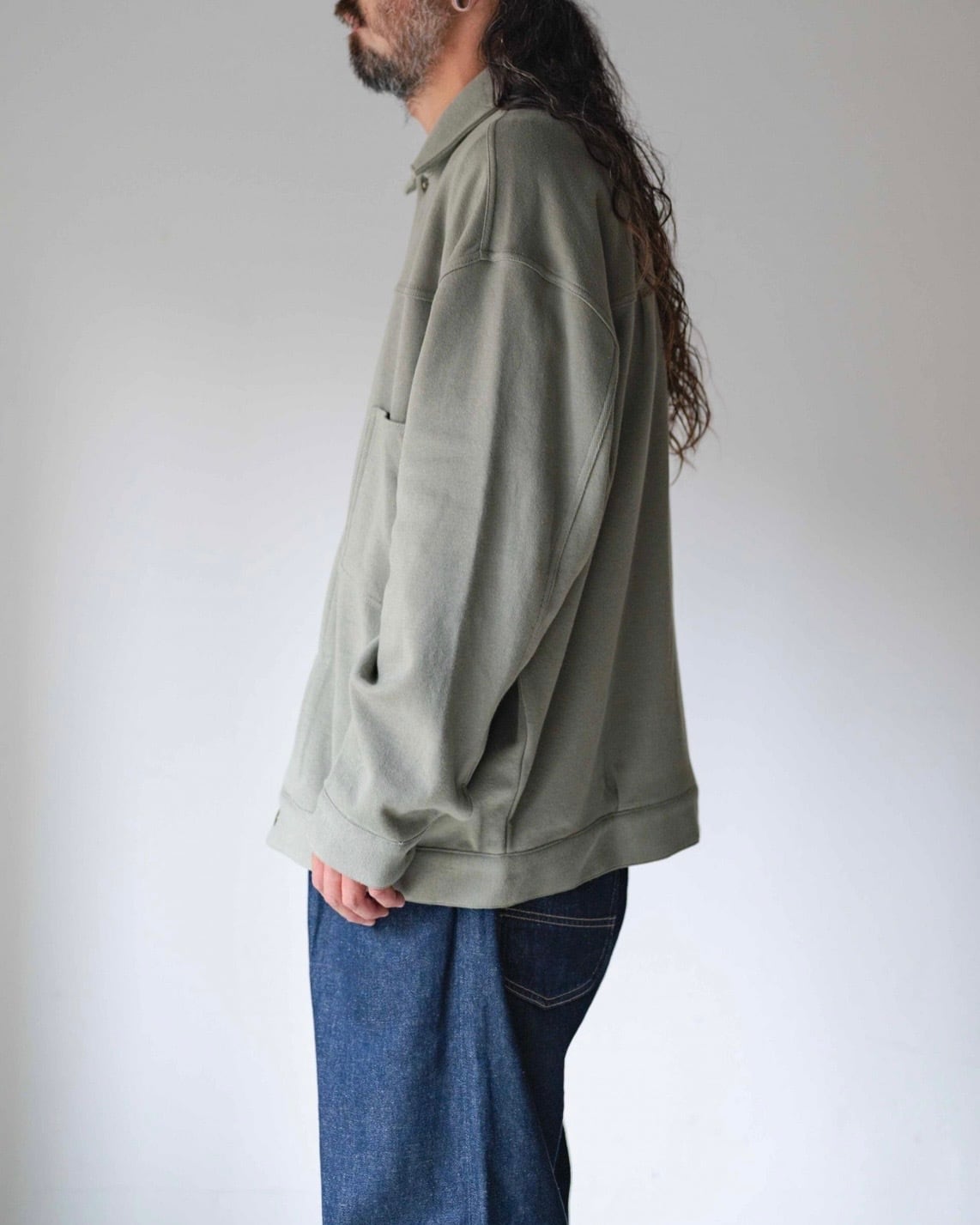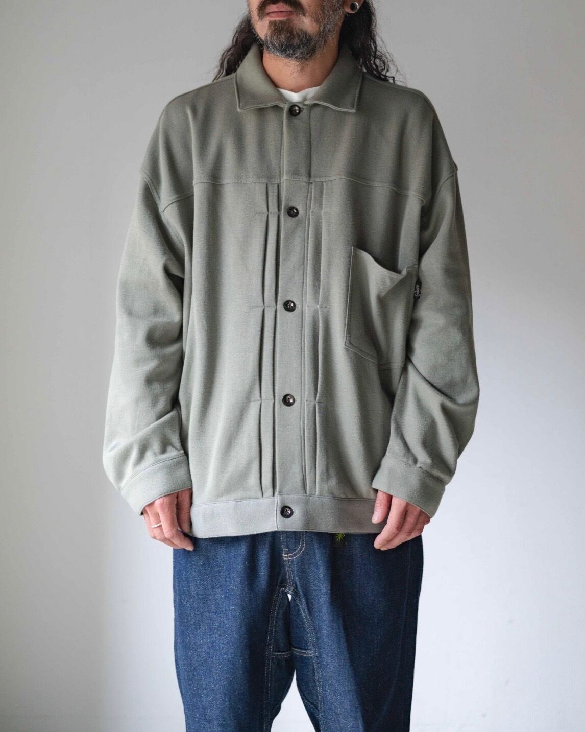 ヴィンテージデニムジャケットのディテールを採用し、GOHEMPなりのアレンジを効かせたジャケットです。ボックス気味のゆとりある身幅やドロップショルダーを特徴としたトレンド感のあるシルエットです。