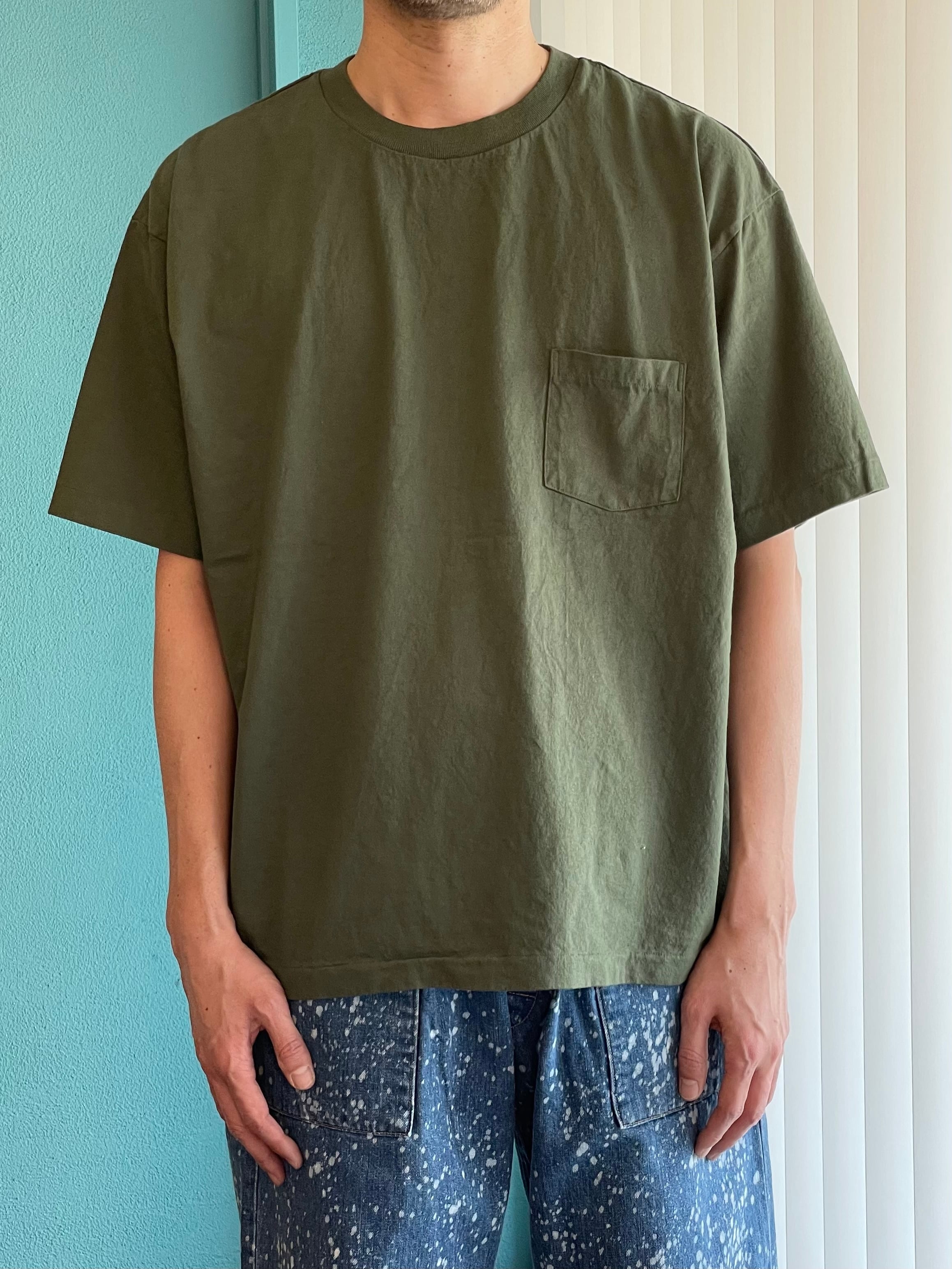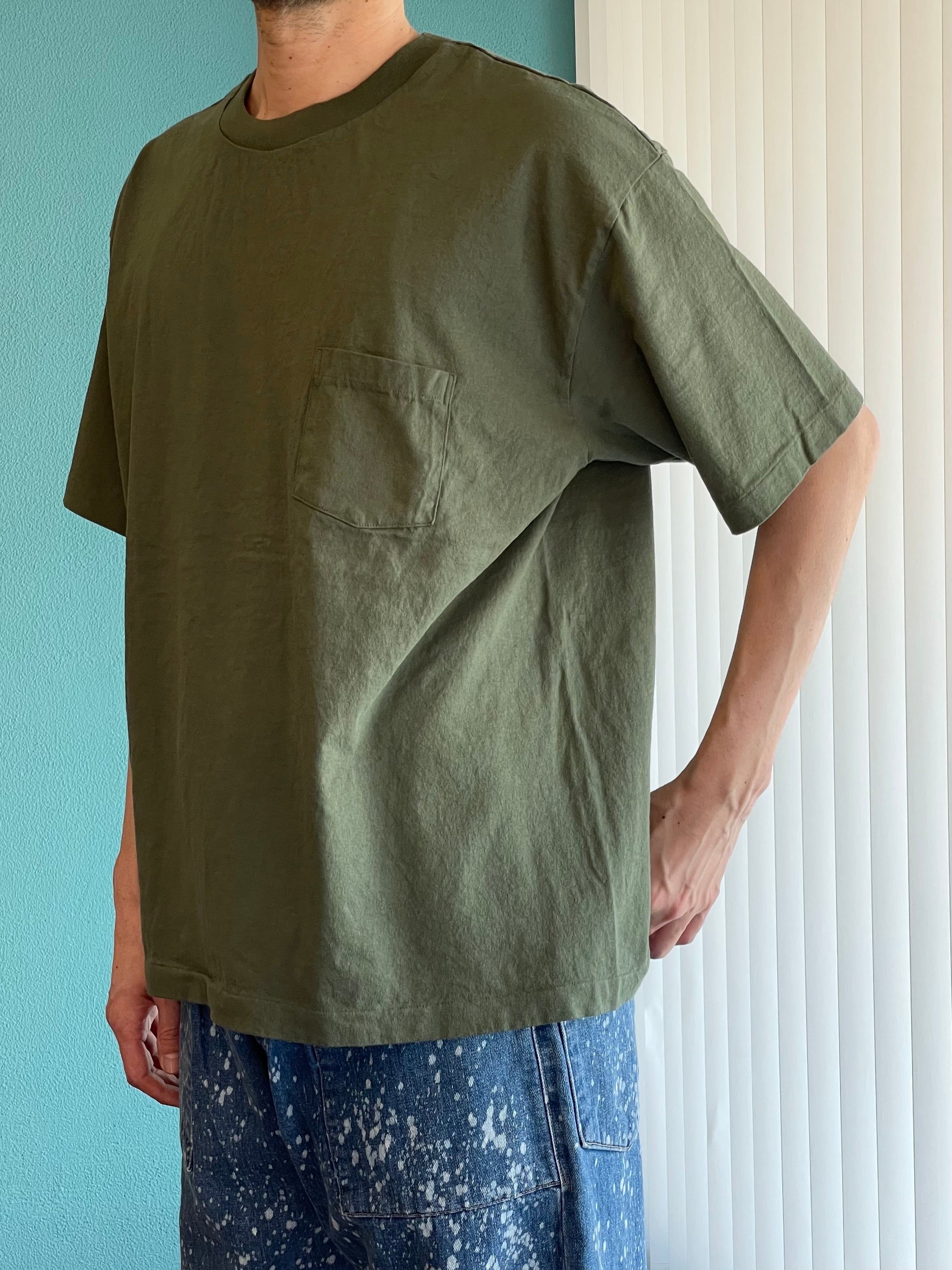 アメリカンコットンを使用した6ozの半袖Tシャツにポケットをつけました。脇に縫い目の無いチューブボディ、ネックテープ、袖と裾はあえてシングルステッチ仕様。ポケットは耳付き。古着界で人気の90年代のヴィンテージTをイメージして細部までこだわって製作しました。シルエットはややワイドで袖丈長めのボックスシルエットです。