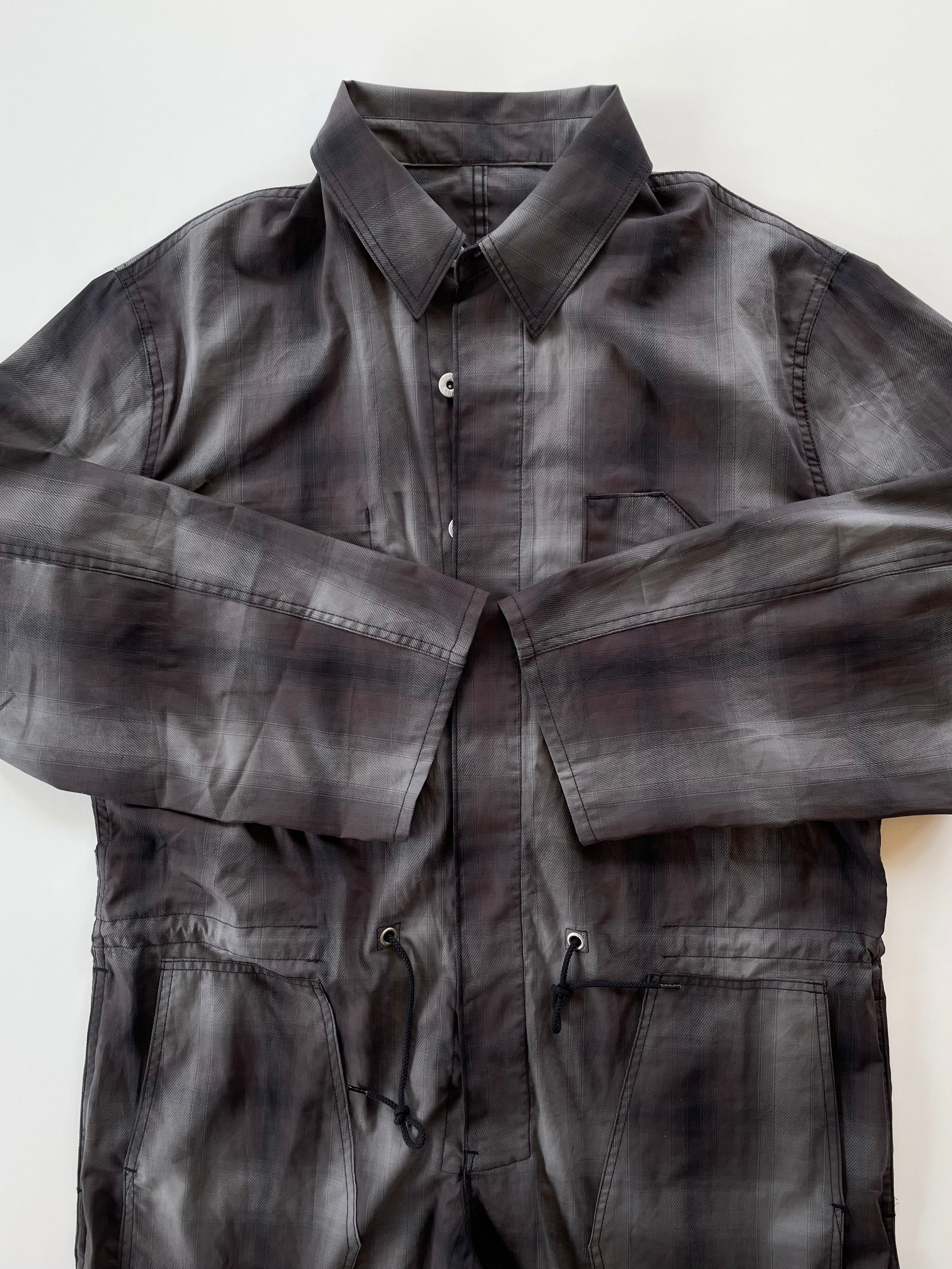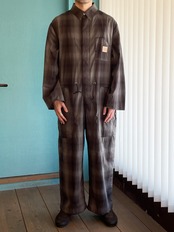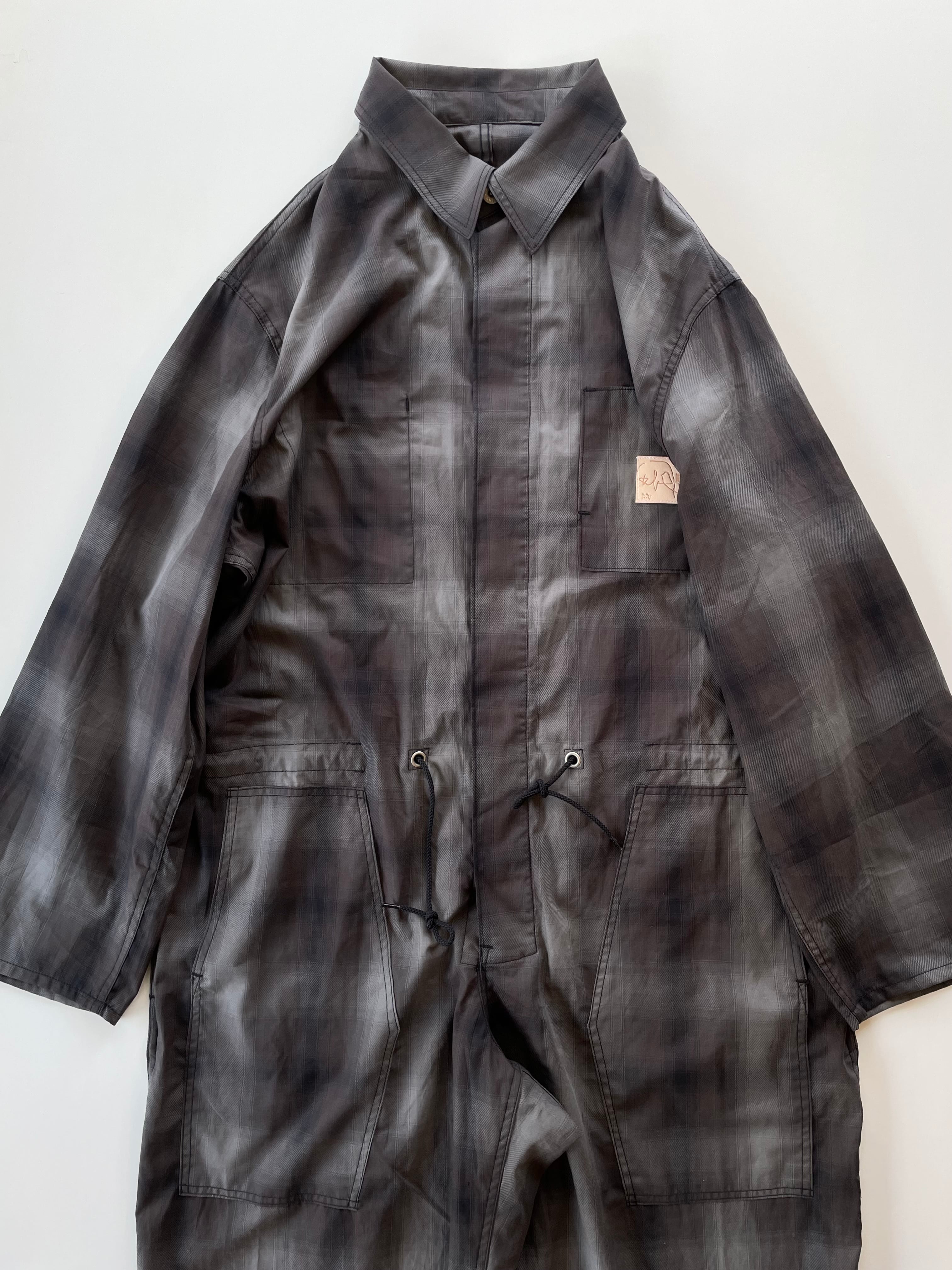 様々な着こなしを楽しめる新型ツナギ。そのままストンとゆったり着るのはもちろん、ウエストのコードを絞りブラウジングして着るのも◎です。また、ツナギといえば腰巻きスタイル。袖部分を巻き付けるだけだと、どうしてもゆるくなってしまいがち。こちらはウエストのコードを絞って安定させ、補助とルックスのために袖部分を腰巻きしてもらえると着心地安定します。是非お試しください。