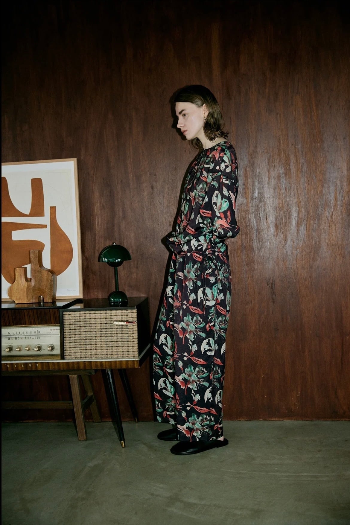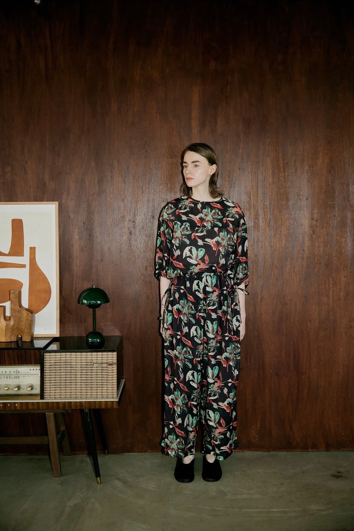 doux bleu - フラワーインドプリントブラウス / BLACK