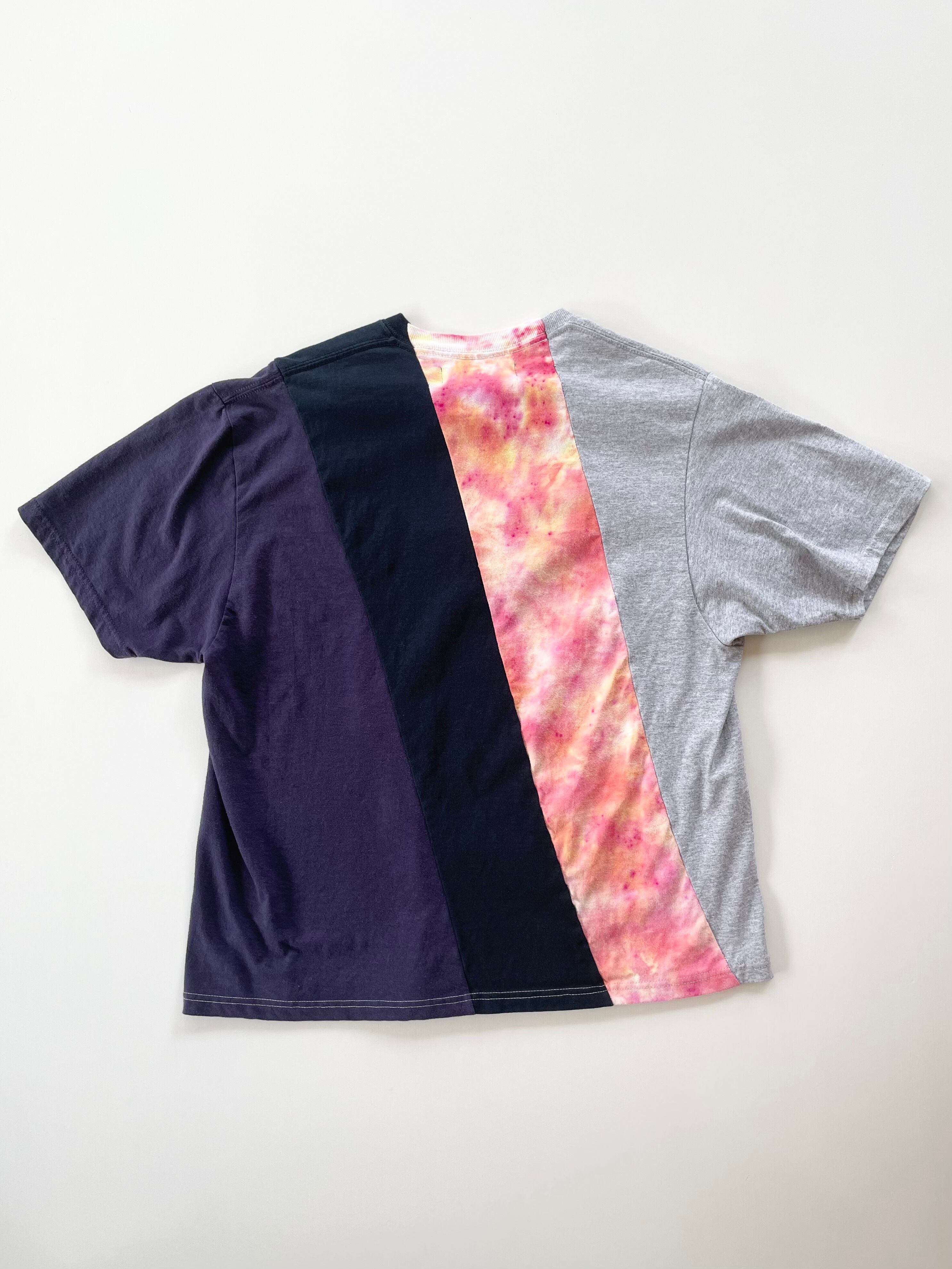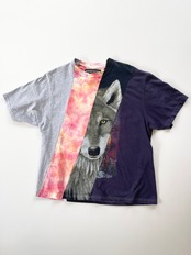 ユーズドのウルフ柄T、タイダイT、無地Tなどを4分割して再構築したリメイクTシャツです。一枚一枚がオンリーワン、あなただけのオリジナルTシャツです。