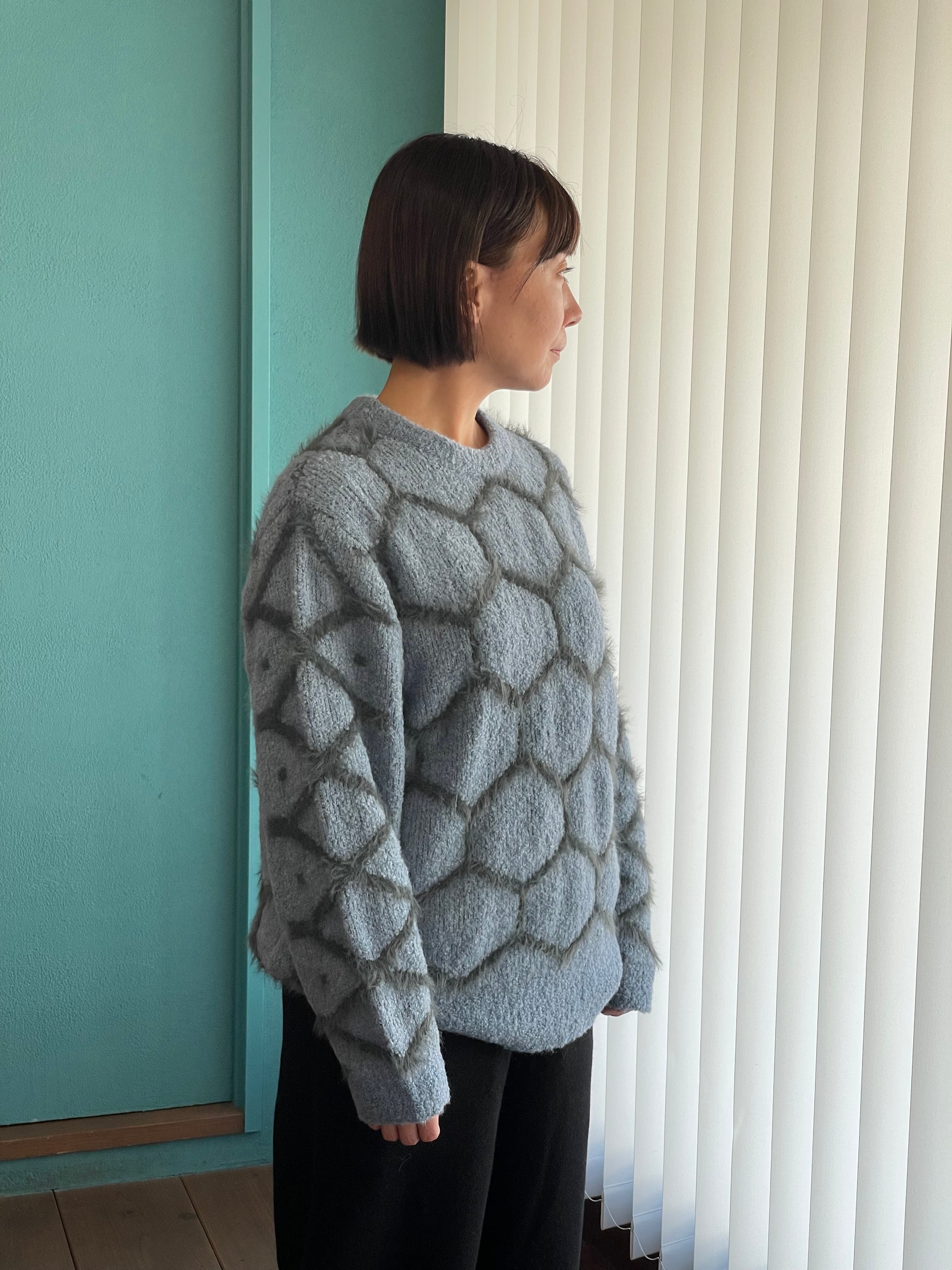 doux bleu - ハニカムパターンニットプルオーバー / BLUE