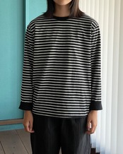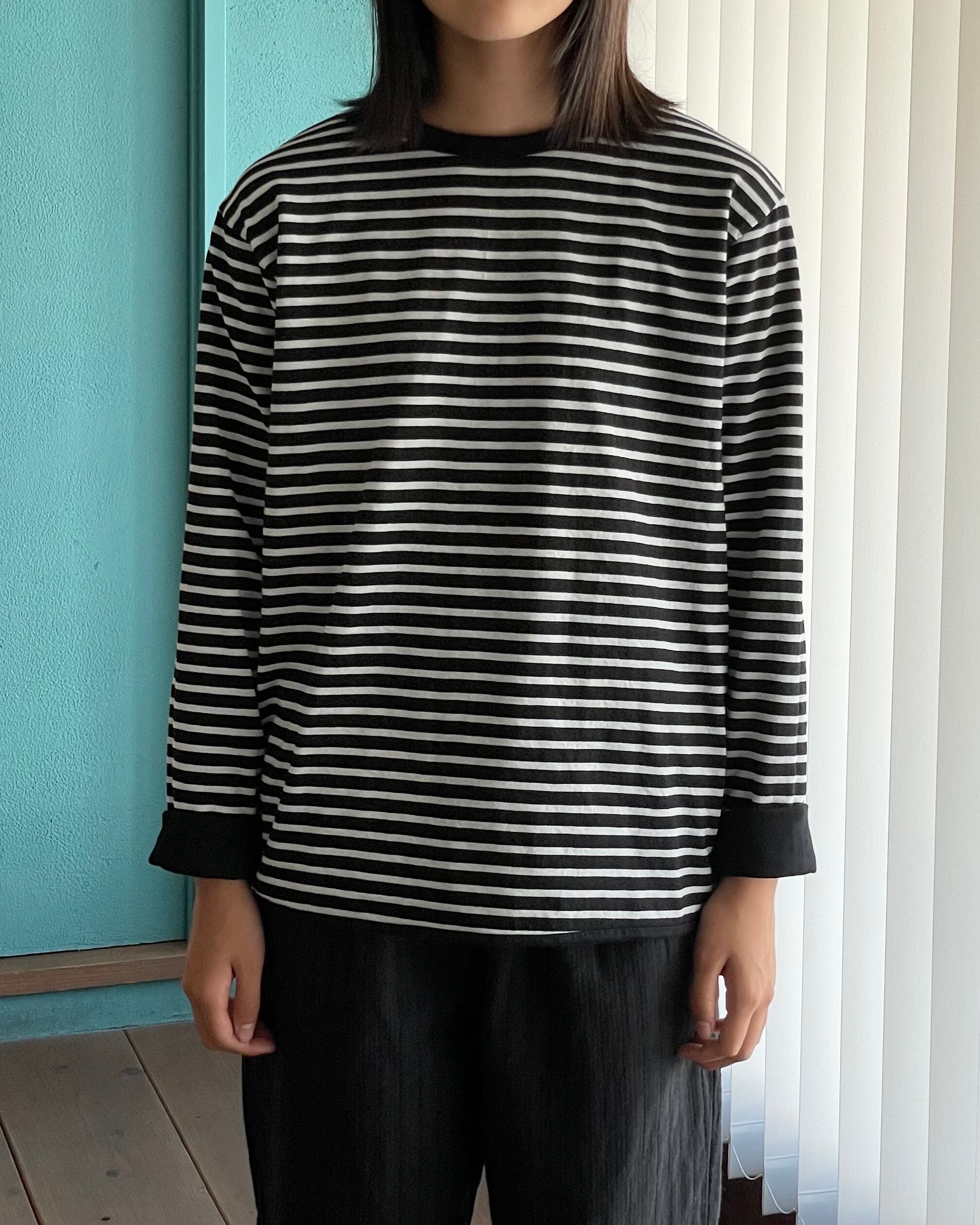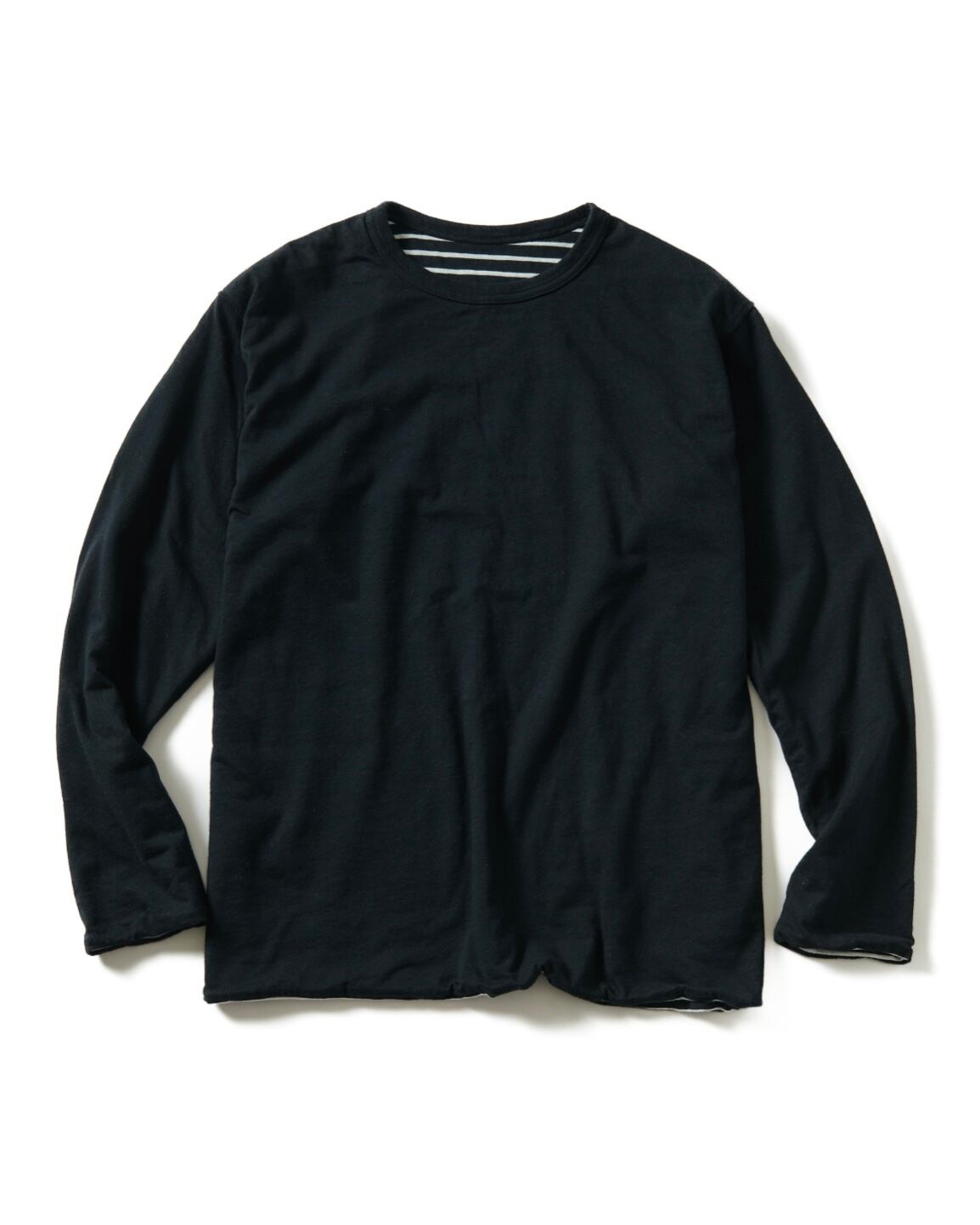 Good On - REVERSIBLE BORDER LS CREW TEE / BLACK
