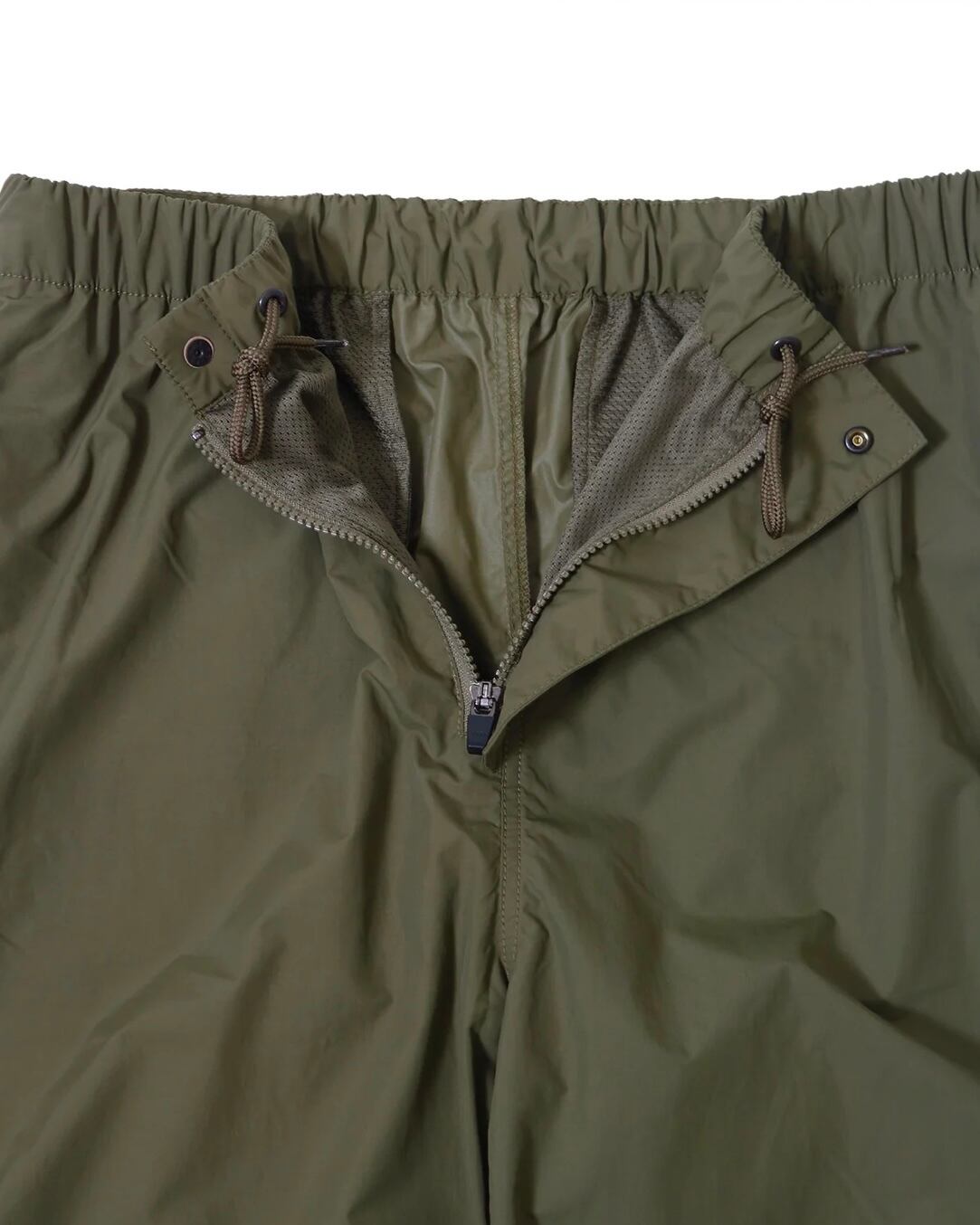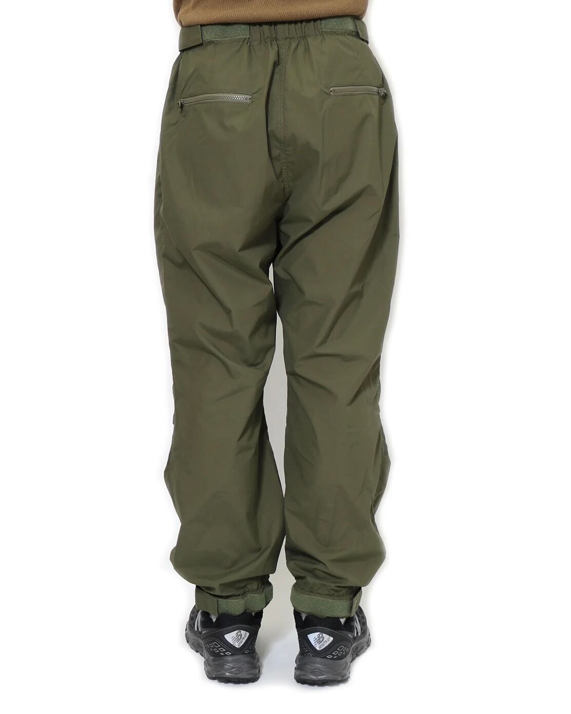 シェルには防風性と撥水性に優れたEPIC (エピック) 加工を施しています。繊維内部にシリコンポリマーをしみこませることで、高い撥水性能が得られ、洗濯による撥水性の低下がほとんどないという耐久性能を合わせ持ちます。軽量でしなやかなエピックの一枚地ですので、雨天時のレインウエアとしも活躍します。やや大きめのシルエットですので、パンツの上から穿くオーバーパンツとしても着用出来ます。裾のベルクロテープでサイズの調整が容易です。膝の部分は二枚地で補強されています。