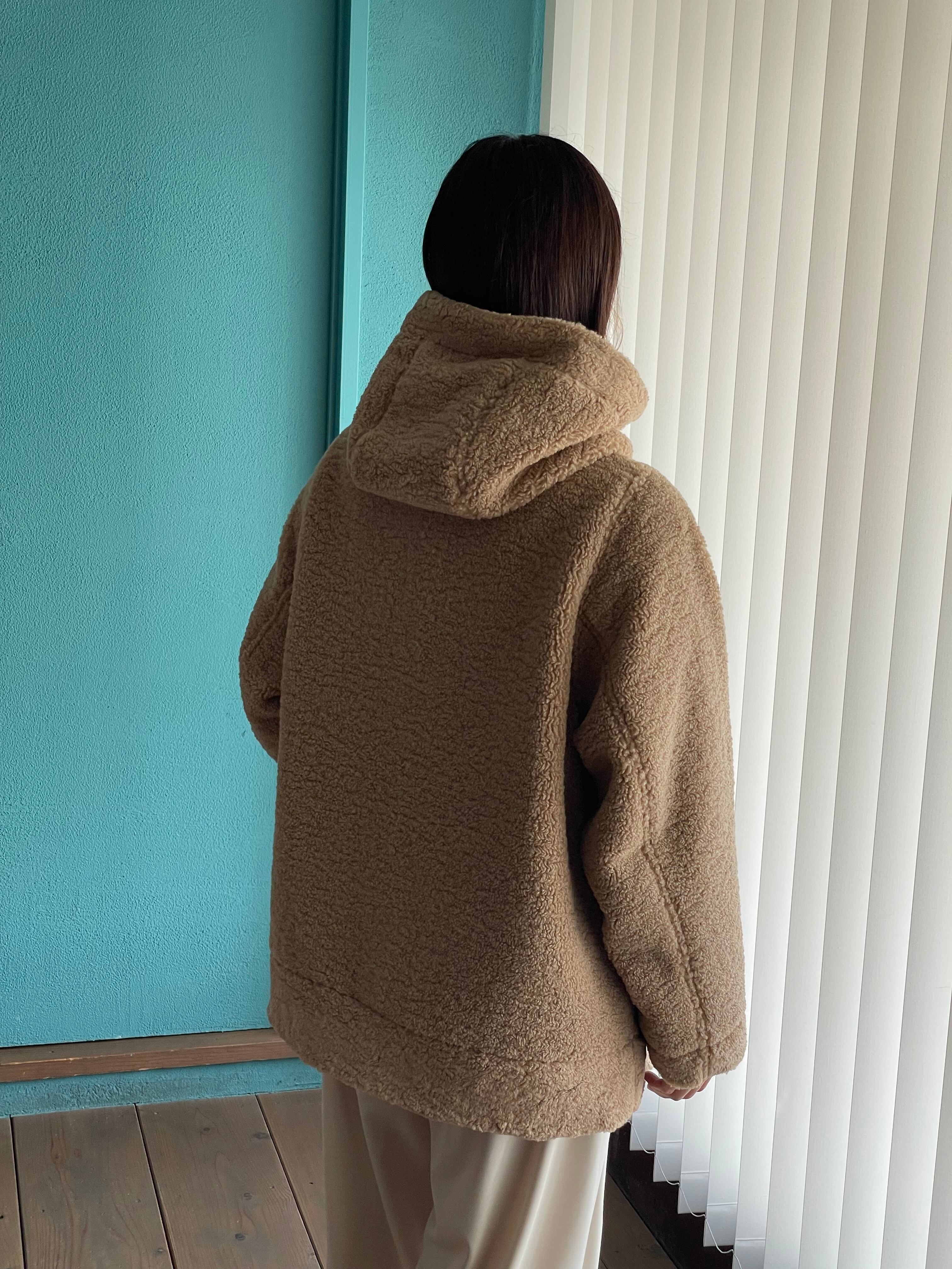 立体的なシルエットにこだわったフード付きボアコート。裏地付きで真冬にも十分な暖かさが有ります。比翼ボタンでシンプルに、スクエア型のビッグポケット等ワーク要素を取り入れて、大人カジュアルなバランスに仕上がりました。ヒップラインもカバー出来る程良い丈感です。