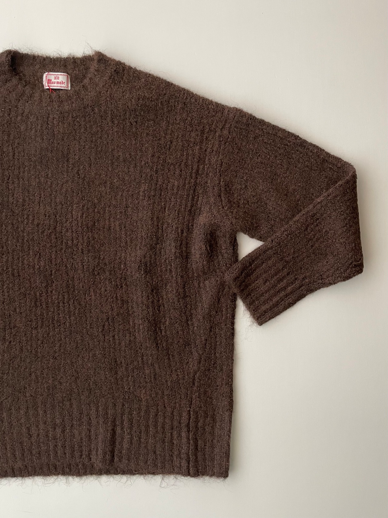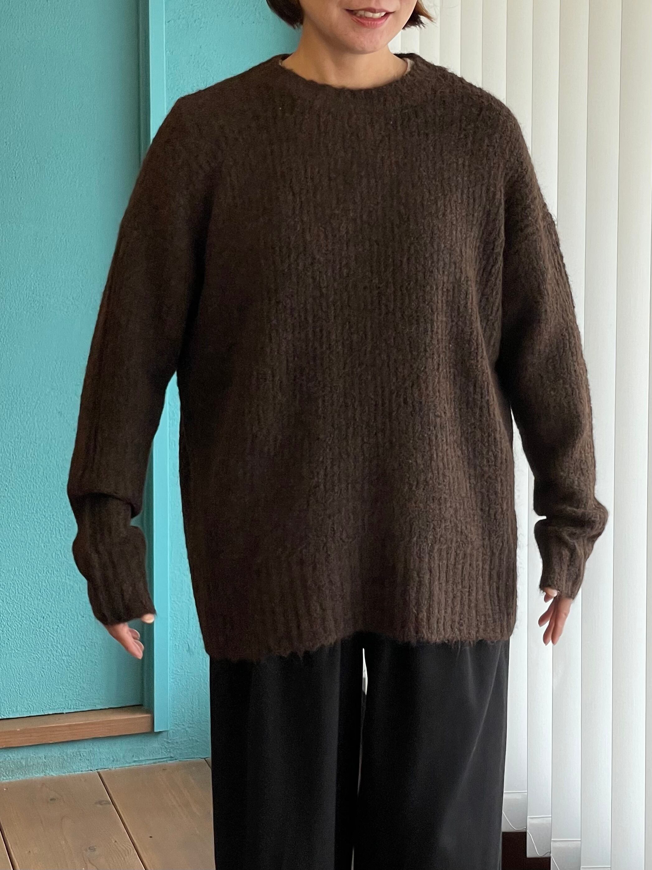 mao made - 451125 ふわっゆるっあぜ編みクルーネックプルオーバー / BROWN