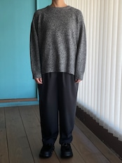 独特のコシと肉感のあるフライス生地を使用したフロントタック入りのイージーパンツ。ピリングが出来づらく、キックバックのあるストレッチするイージーケア素材なので、デイリーにお使いいただけます。きれいめスタイルにも好相性。ウエストは総ゴム、内紐付きです。